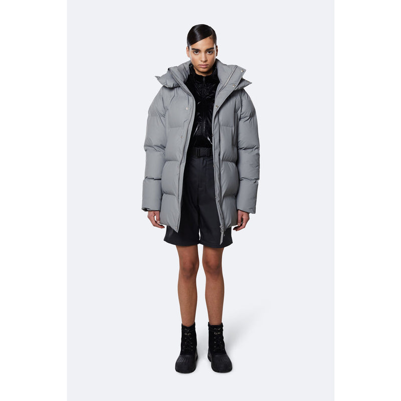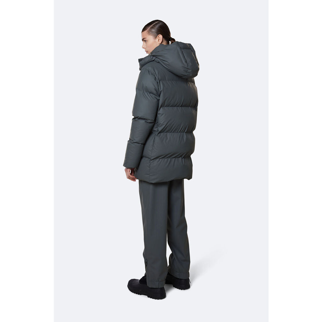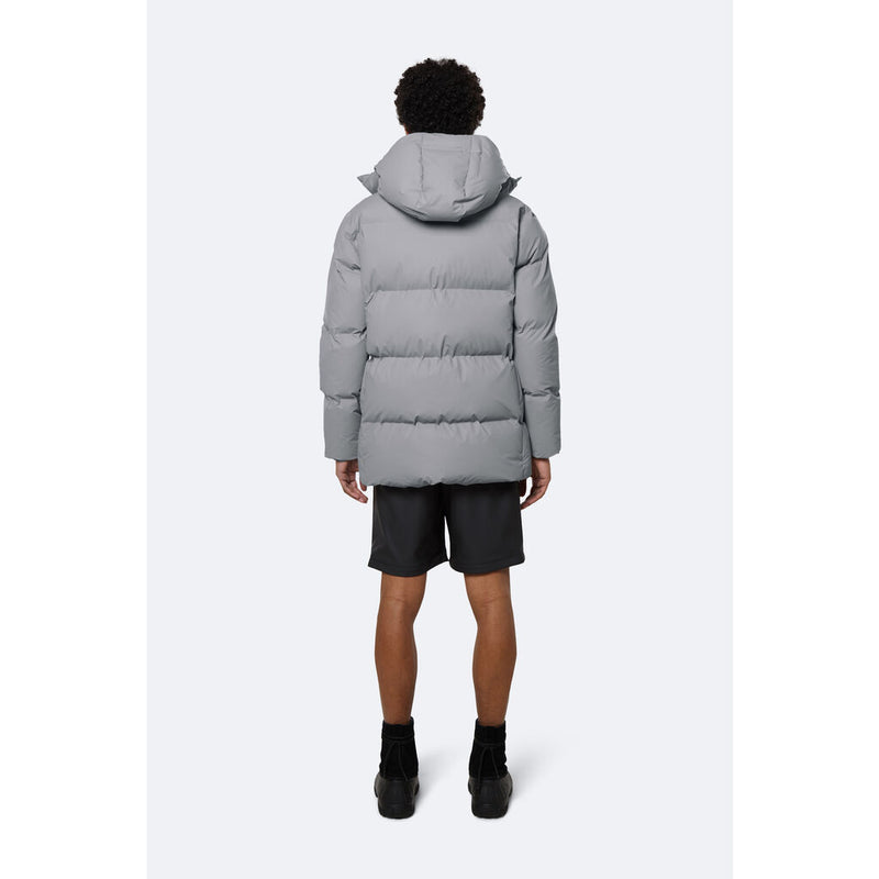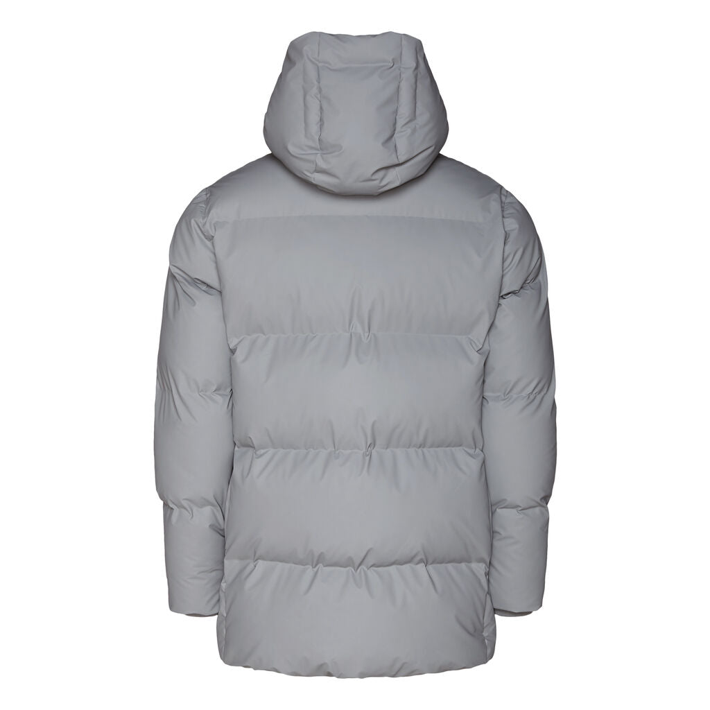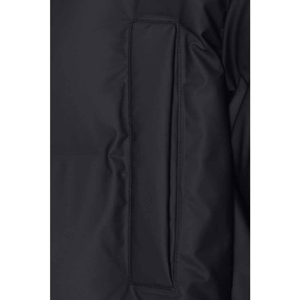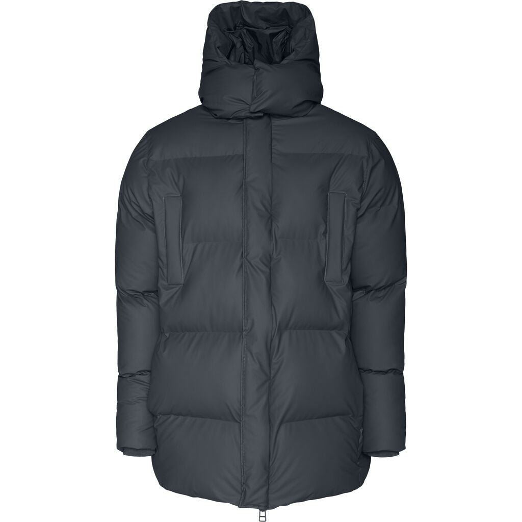 Hooded Puffer Coat is an insulated winter jacket from Rains Thermal category, constructed from a breathable, yet waterproof PU fabric. Hooded Puffer Coat is designed with a straight silhouette and wide puffer chambers that are filled with a plant-based insulation. Rains puffers feature an innovative approach to quilting via seamless chambers, woven from the backside to ensure a waterproof bond. Signature to Hooded Puffer Coat from Rains is a double collar effect, with the pairing of an insulated stand-up collar and an insulated hood. Lined in fleece, pockets are placed at the sides of the body, as well as at the chest.