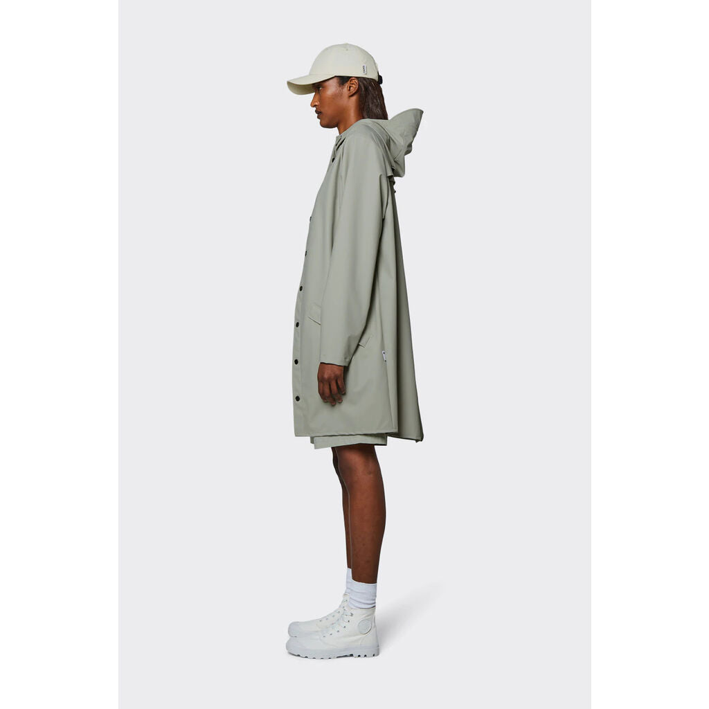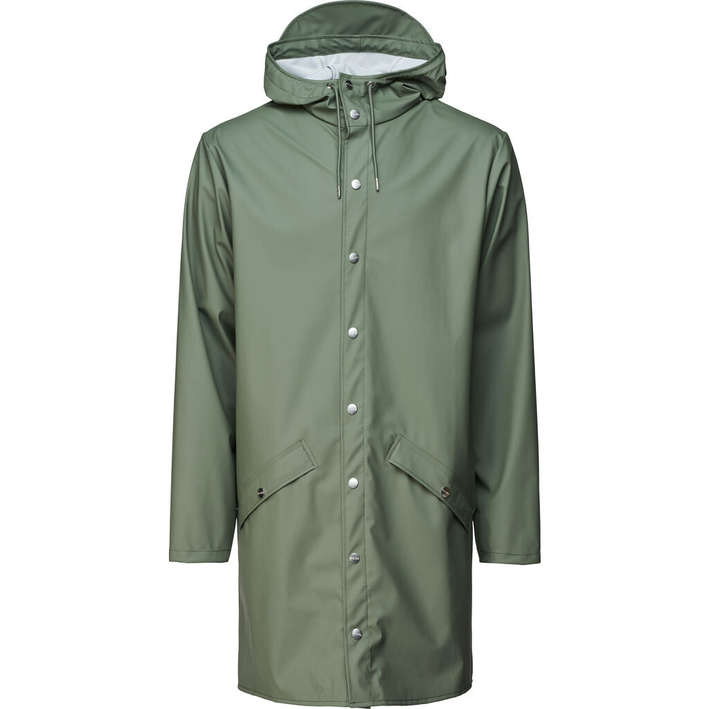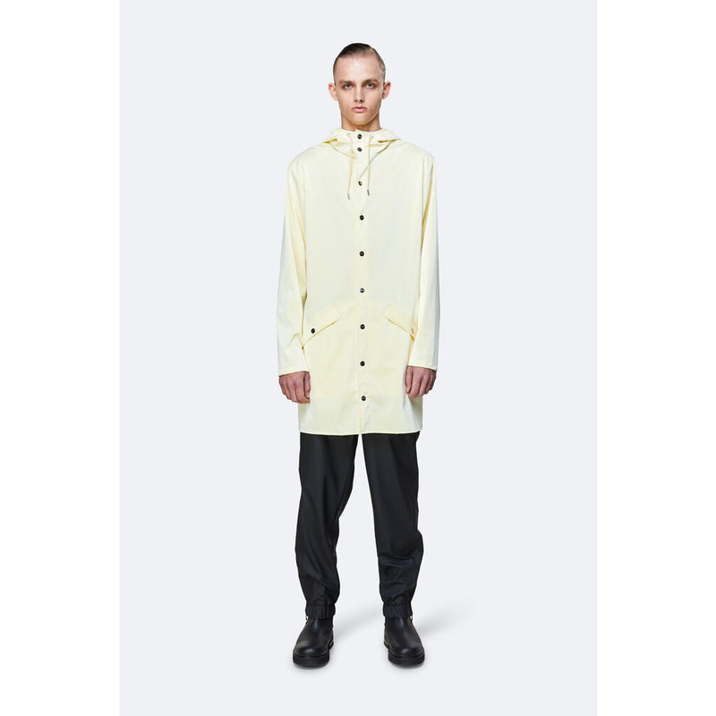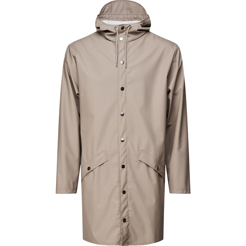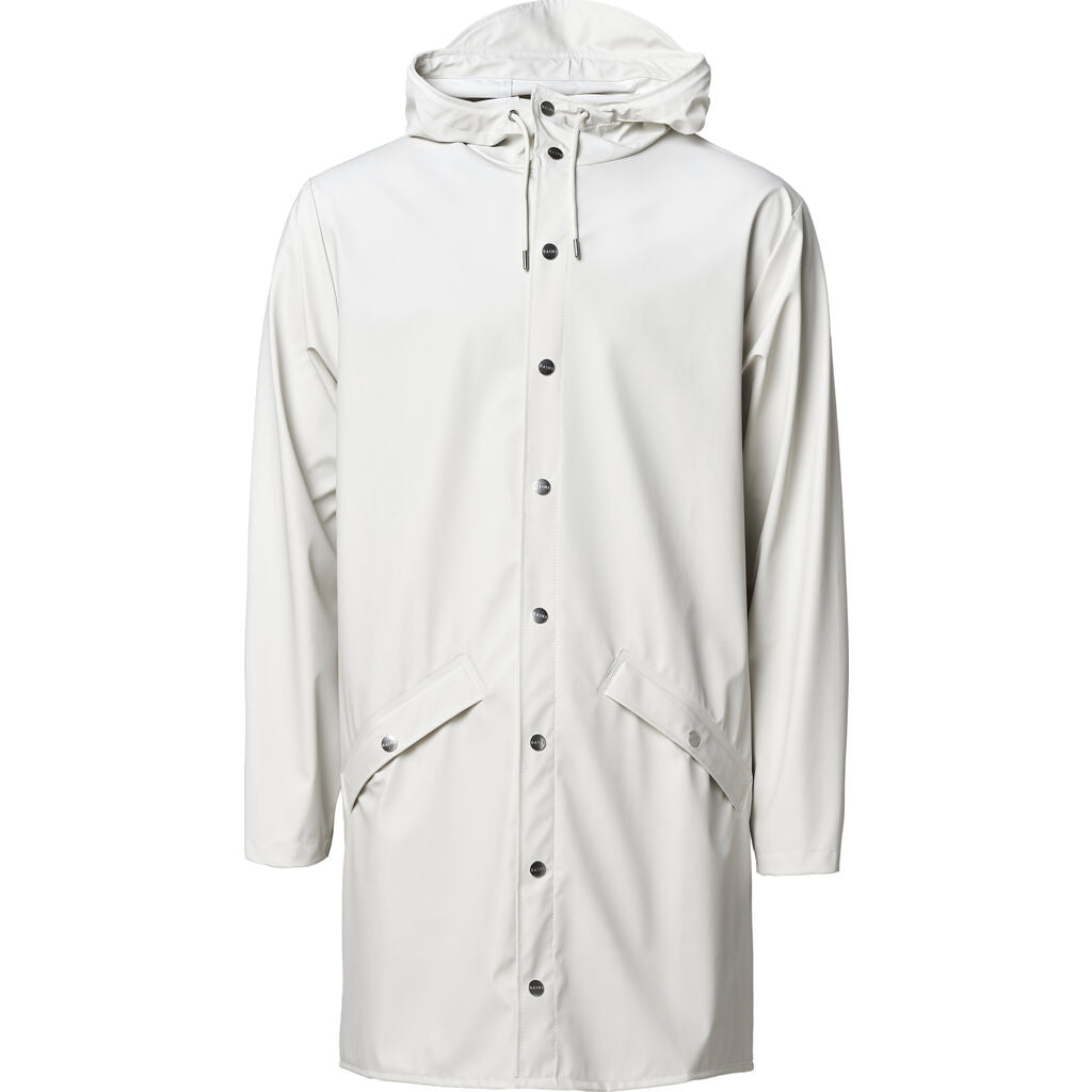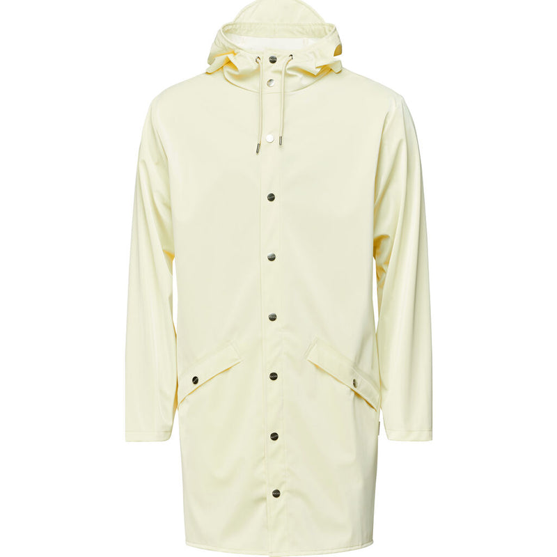 Rain's Long Jacket is a longer version of the urban Jacket and both are essential Rains classics. Made from a water-resistant lightweight fabric with a matte finish, this unisex rain jacket has an elegant appearance. Designed in a casual raincoat silhouette, it has double welded slanting pocket flaps, adjustable cuffs and a fishtail.