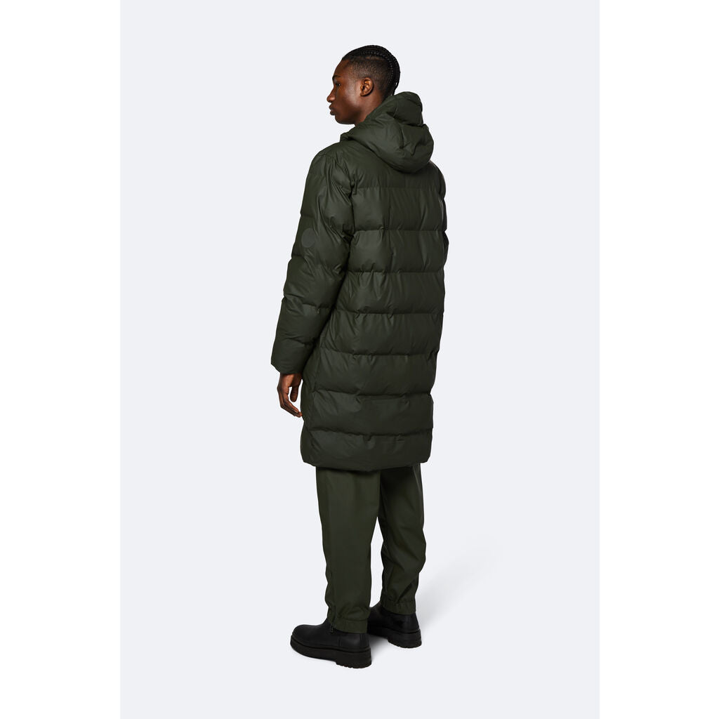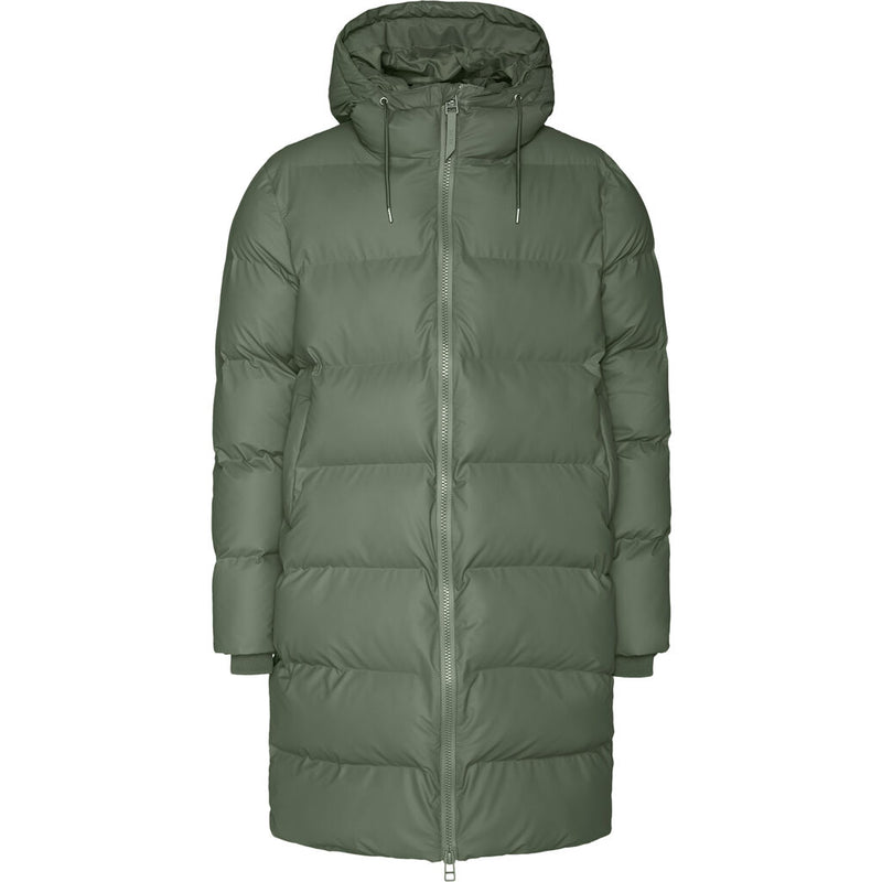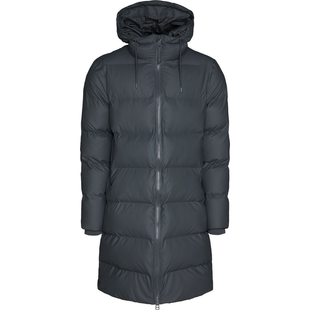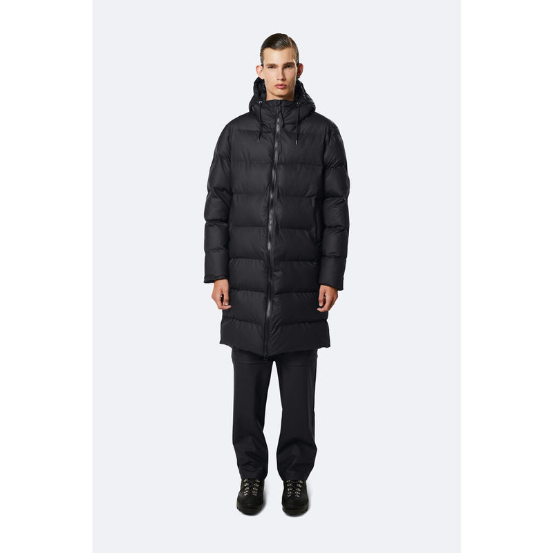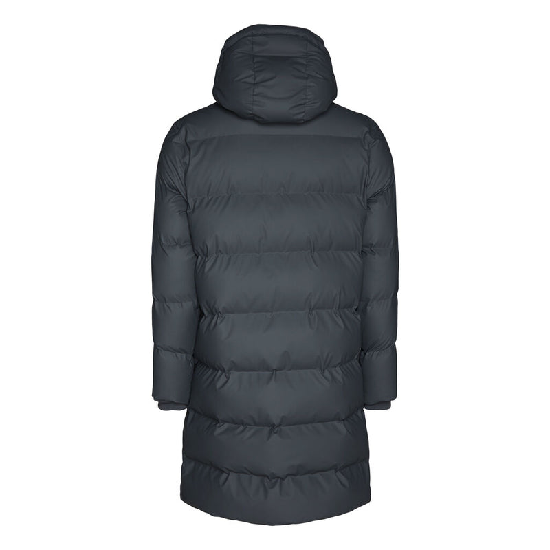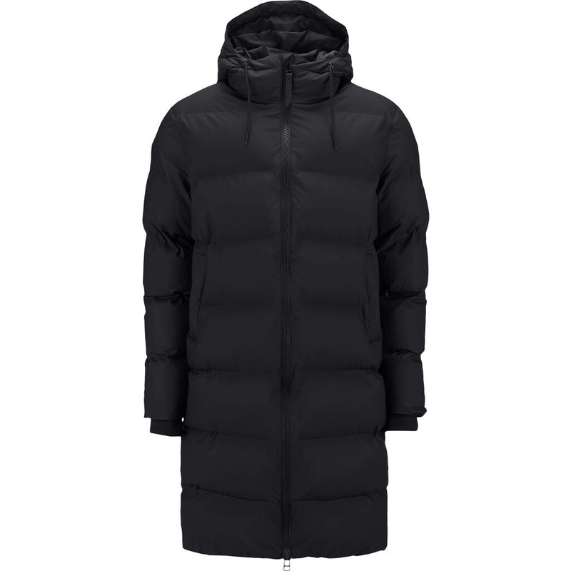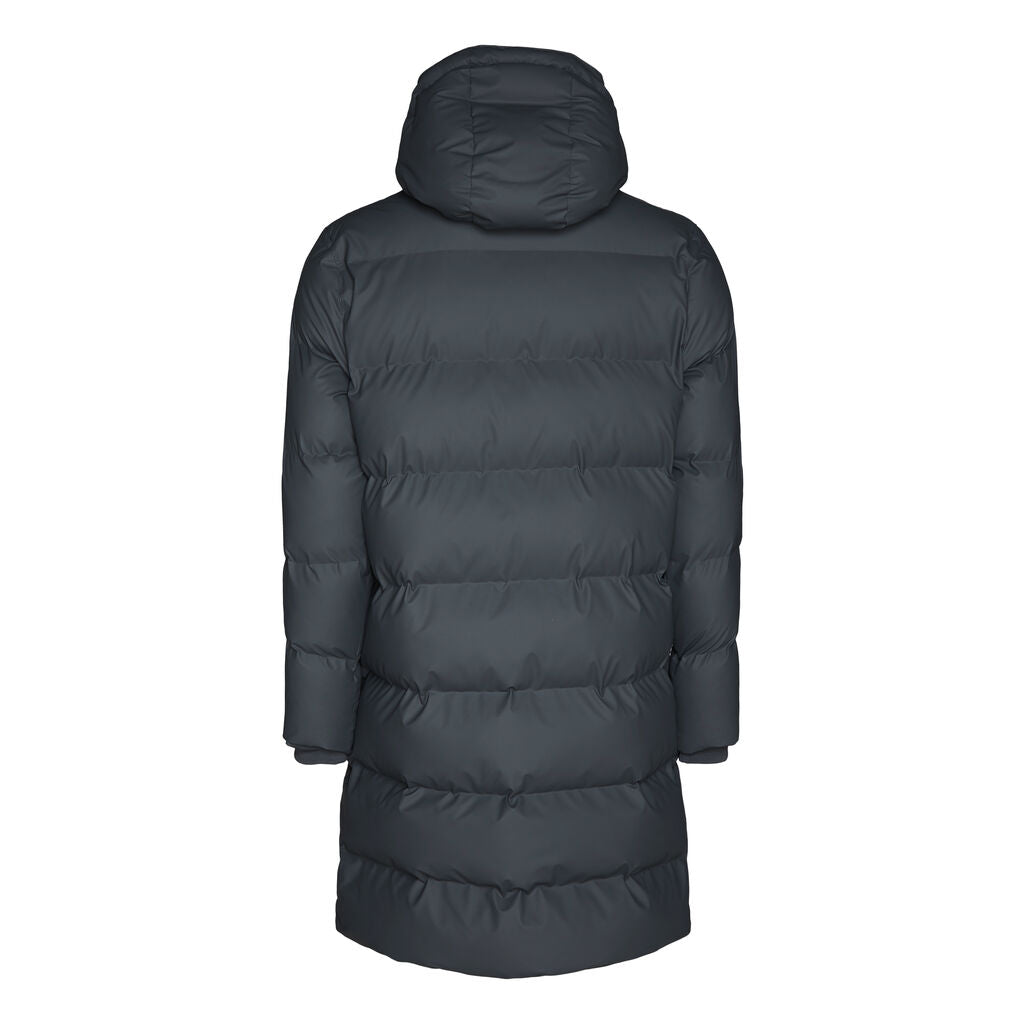 Long Puffer Jacket is an insulated winter jacket from Rains Thermal category made from a breathable, yet waterproof fabric. Designed with seamless woven chambers, the Long Puffer Jacket features featherless insulation, providing warmth in extreme conditions. The jacket is crafted with stainless steel and durable rubber trimmings, welt pockets, a padded hood and coated in Rains signature matte PU.