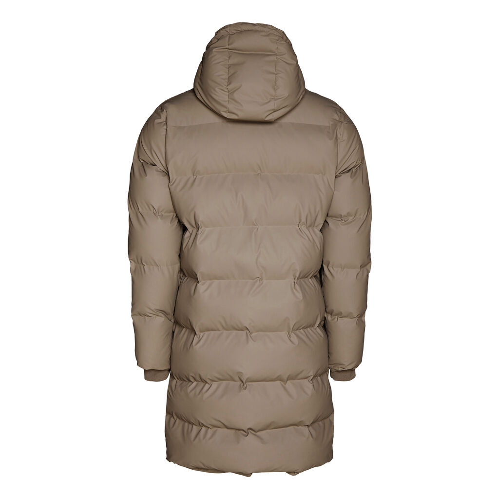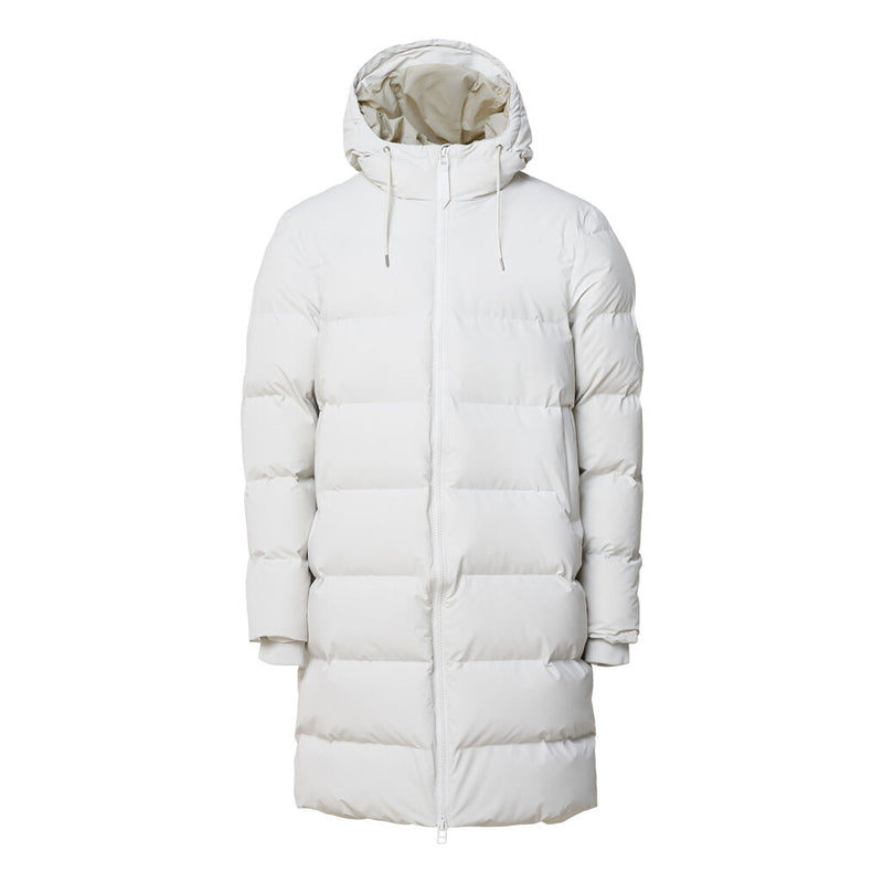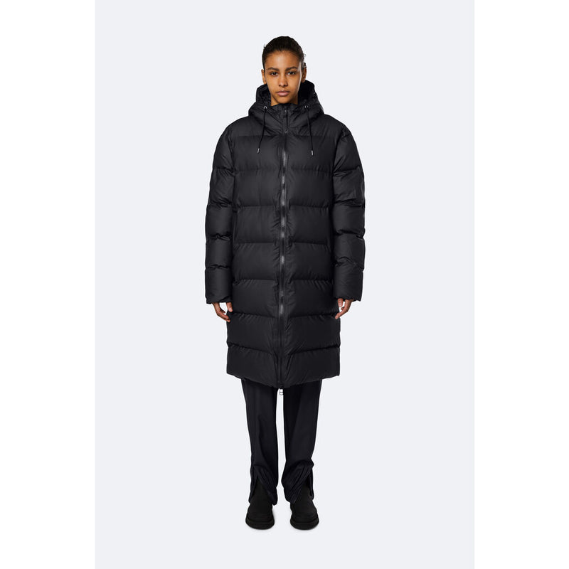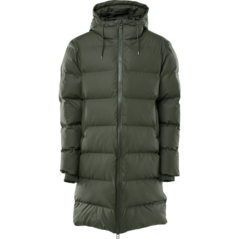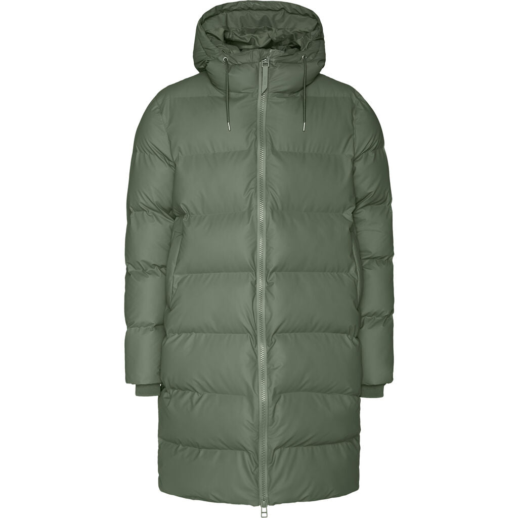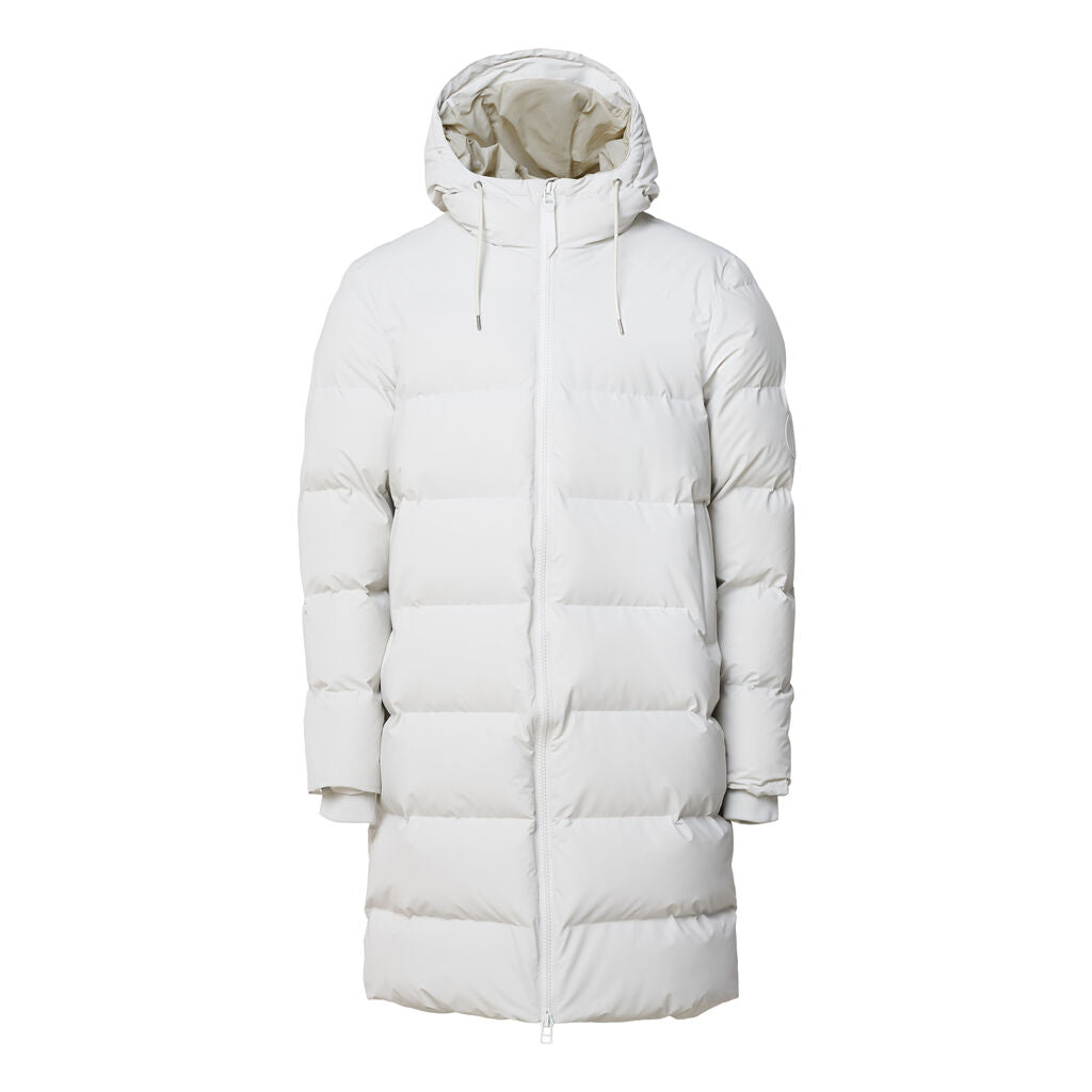 Long Puffer Jacket is an insulated winter jacket from Rains Thermal category made from a breathable, yet waterproof fabric. Designed with seamless woven chambers, the Long Puffer Jacket features featherless insulation, providing warmth in extreme conditions. The jacket is crafted with stainless steel and durable rubber trimmings, welt pockets, a padded hood and coated in Rains signature matte PU.