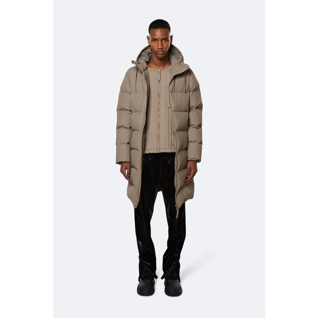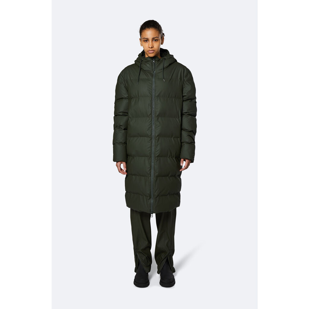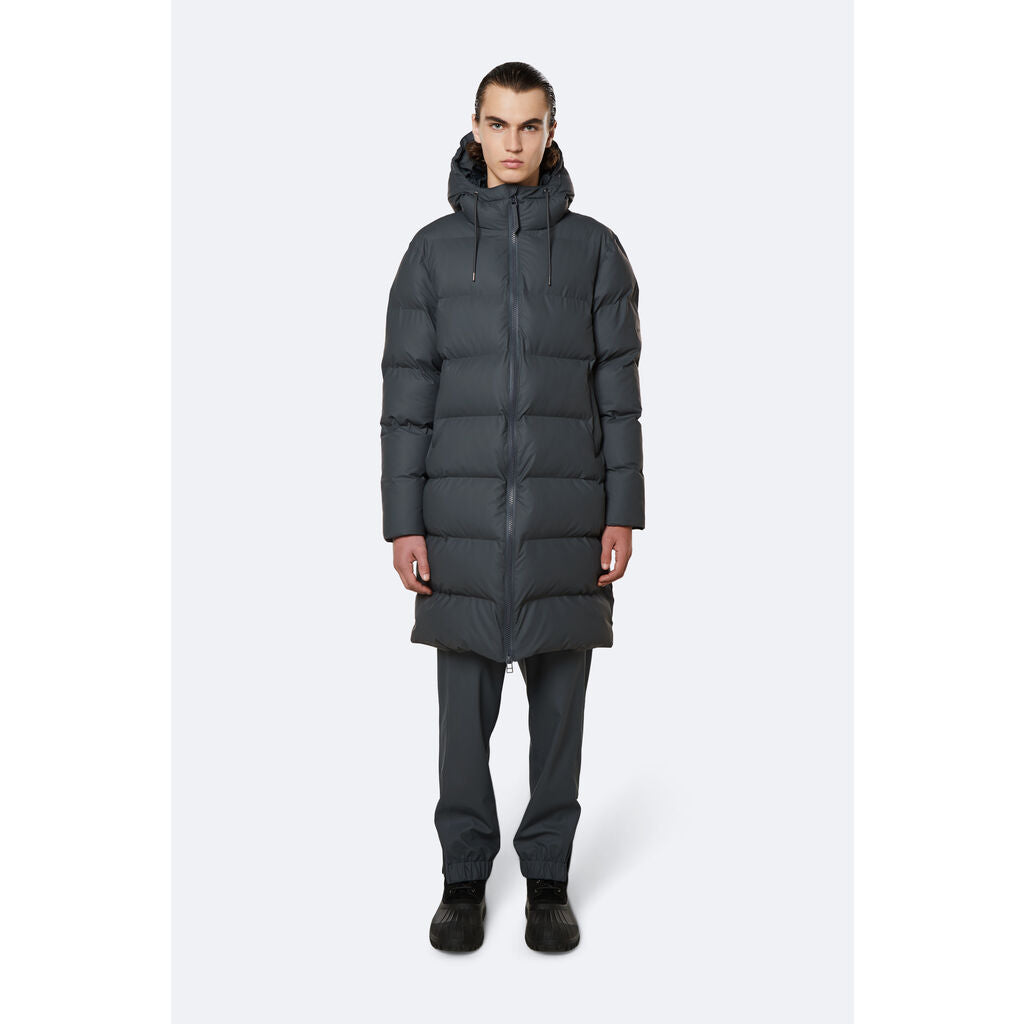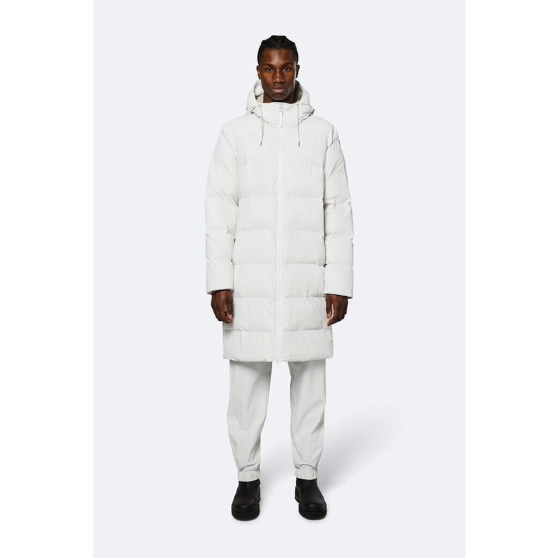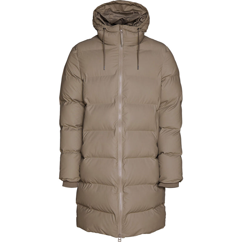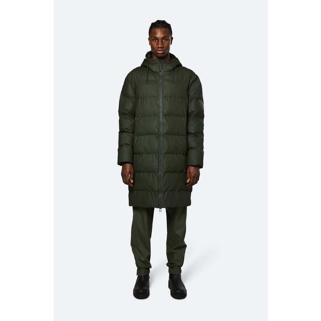 Long Puffer Jacket is an insulated winter jacket from Rains Thermal category made from a breathable, yet waterproof fabric. Designed with seamless woven chambers, the Long Puffer Jacket features featherless insulation, providing warmth in extreme conditions. The jacket is crafted with stainless steel and durable rubber trimmings, welt pockets, a padded hood and coated in Rains signature matte PU.