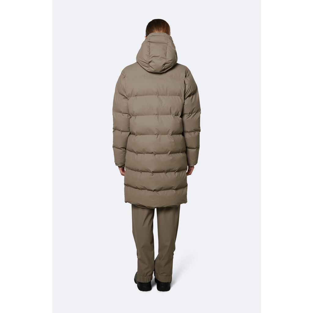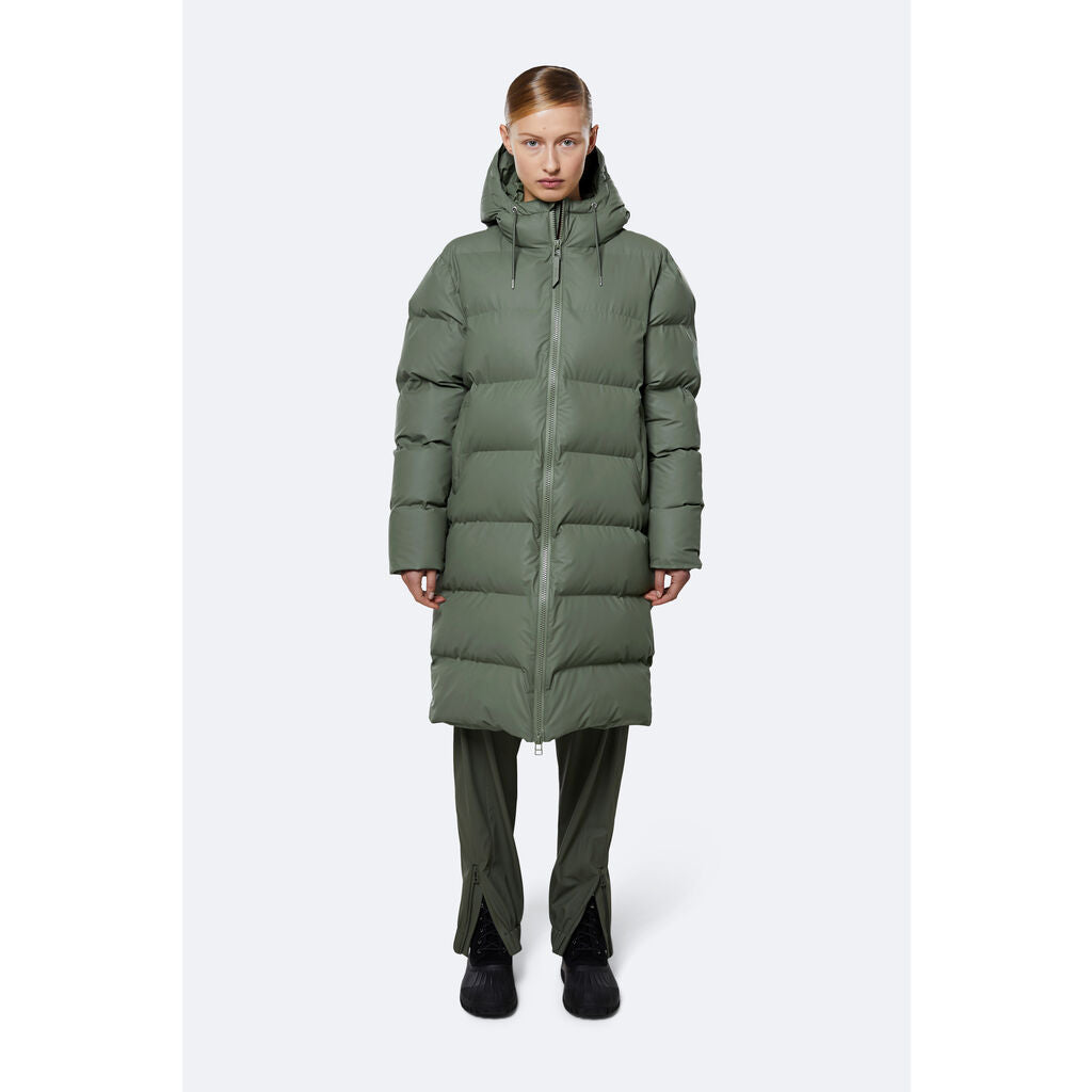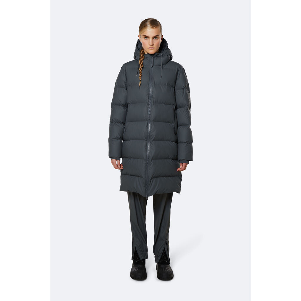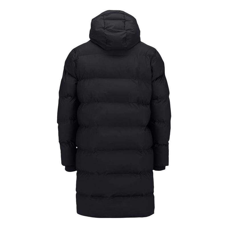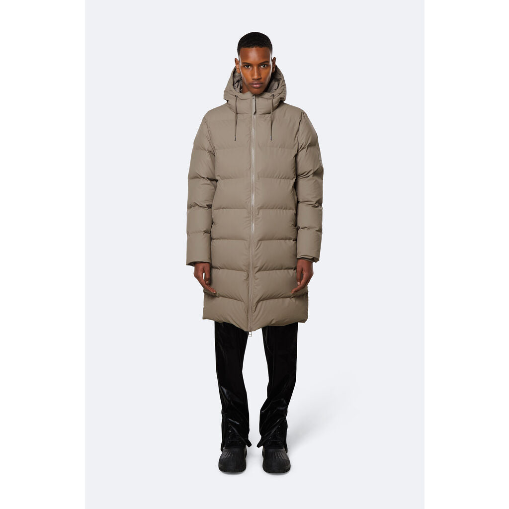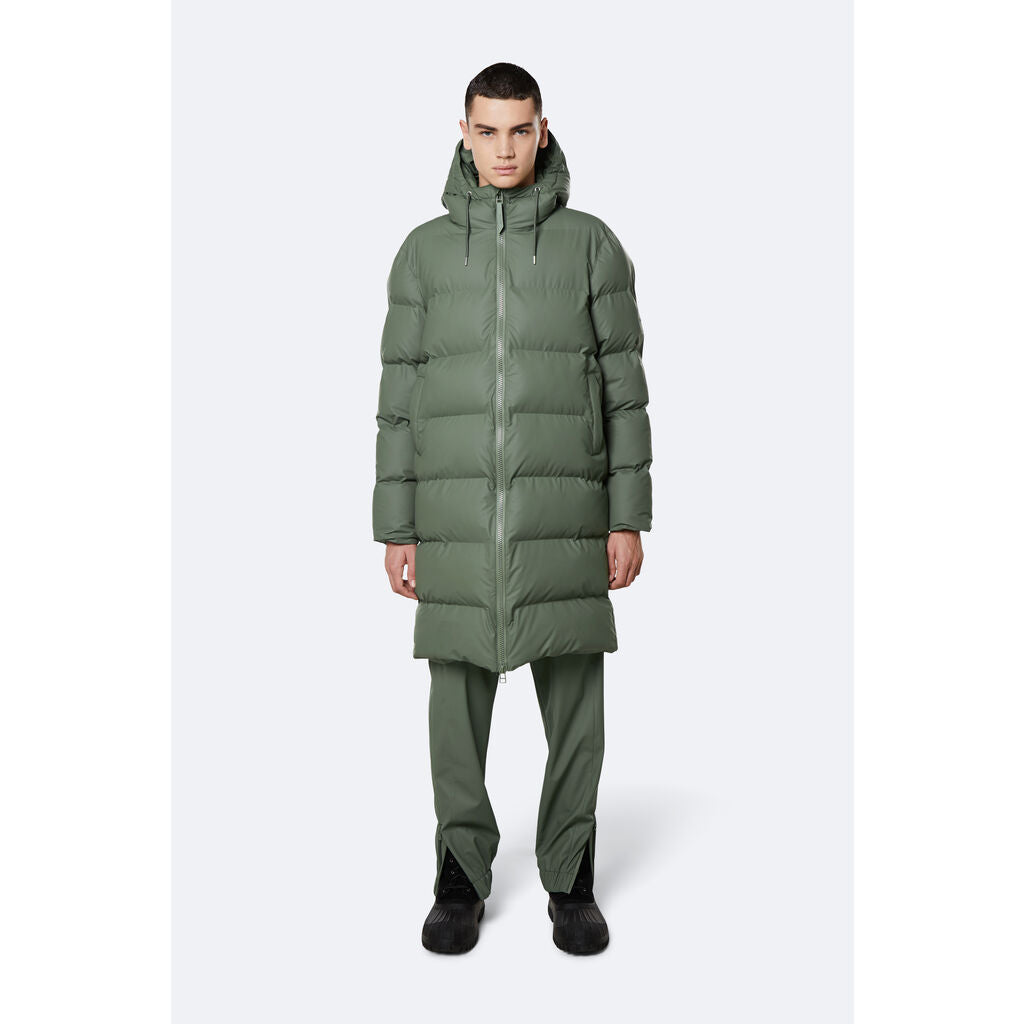 Long Puffer Jacket is an insulated winter jacket from Rains Thermal category made from a breathable, yet waterproof fabric. Designed with seamless woven chambers, the Long Puffer Jacket features featherless insulation, providing warmth in extreme conditions. The jacket is crafted with stainless steel and durable rubber trimmings, welt pockets, a padded hood and coated in Rains signature matte PU.