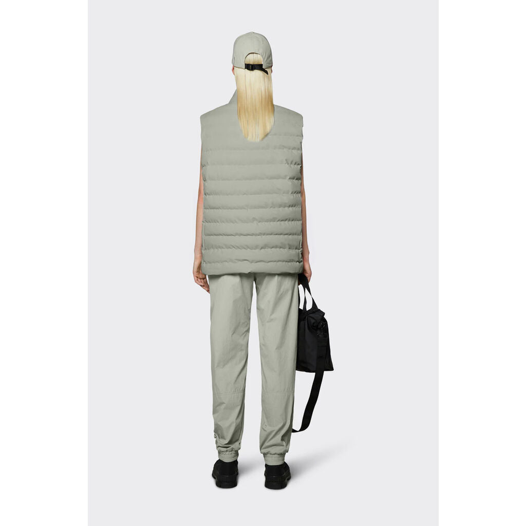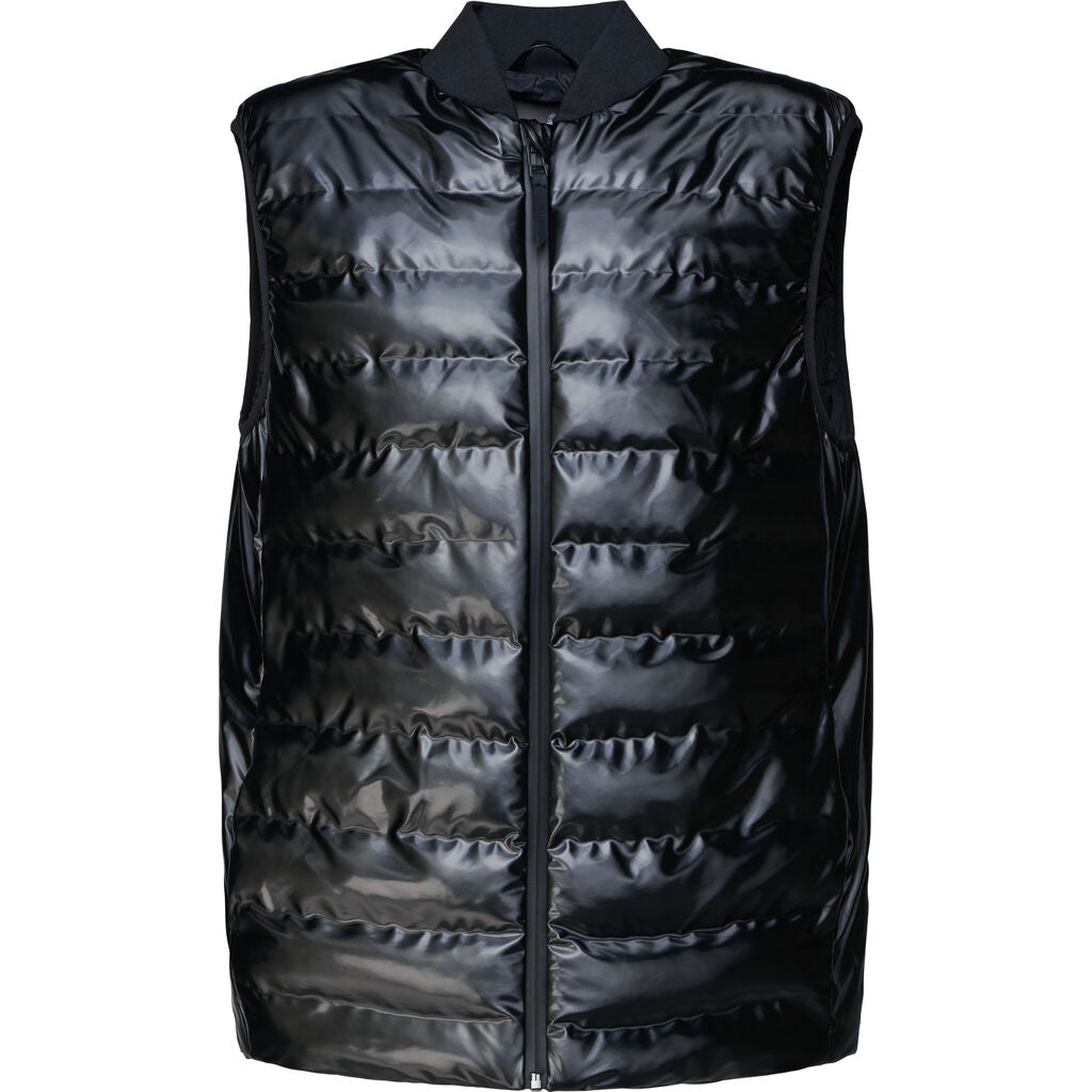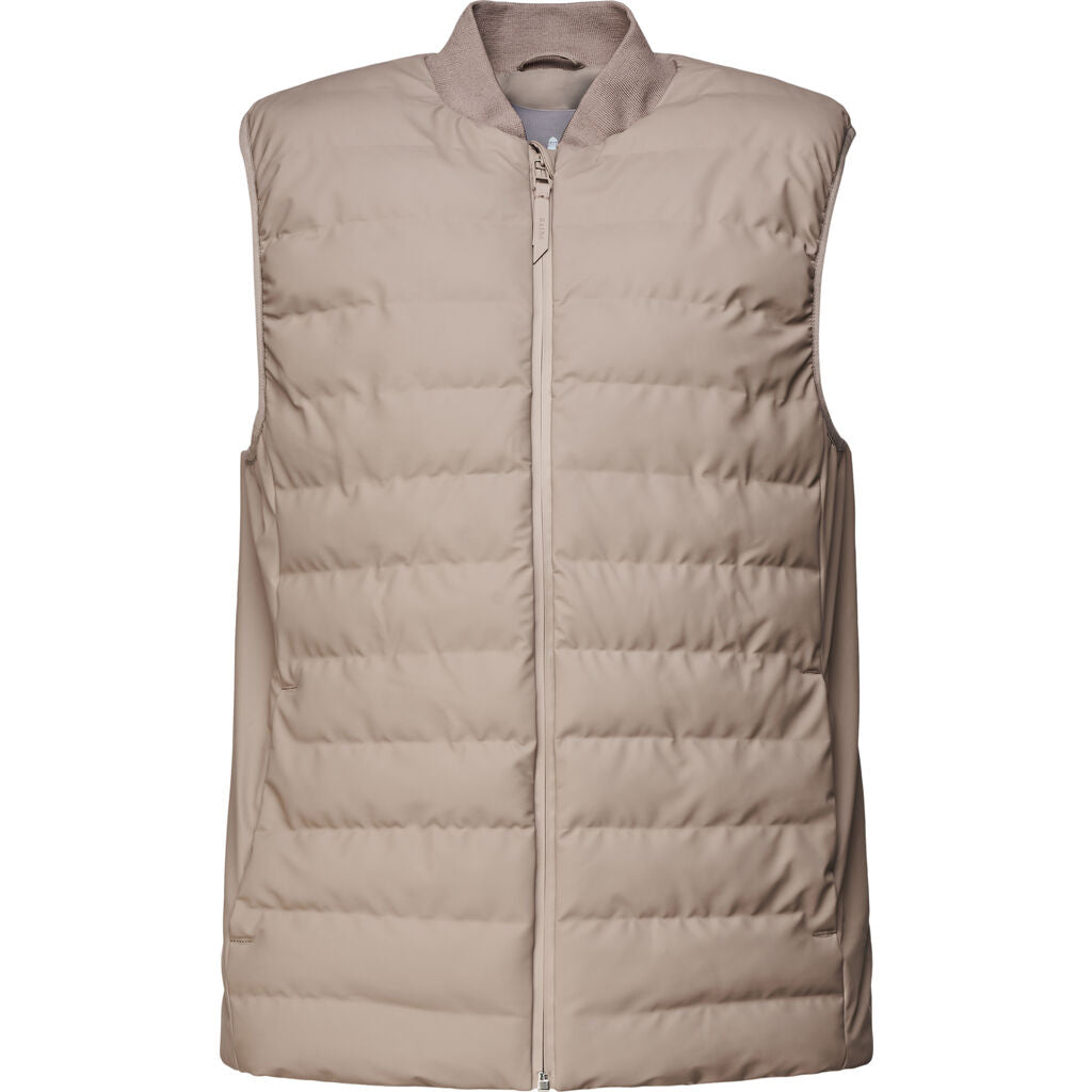 Breathability through Rain's signature waterproof, yet breathable, PU. Horizontally welded quilt lines run across the chest for warmth, and each side comprises a non-quilted panel for increased mobility. Trekker Vest also features hidden side pockets with zipper closure, a waterproof front zipper.