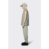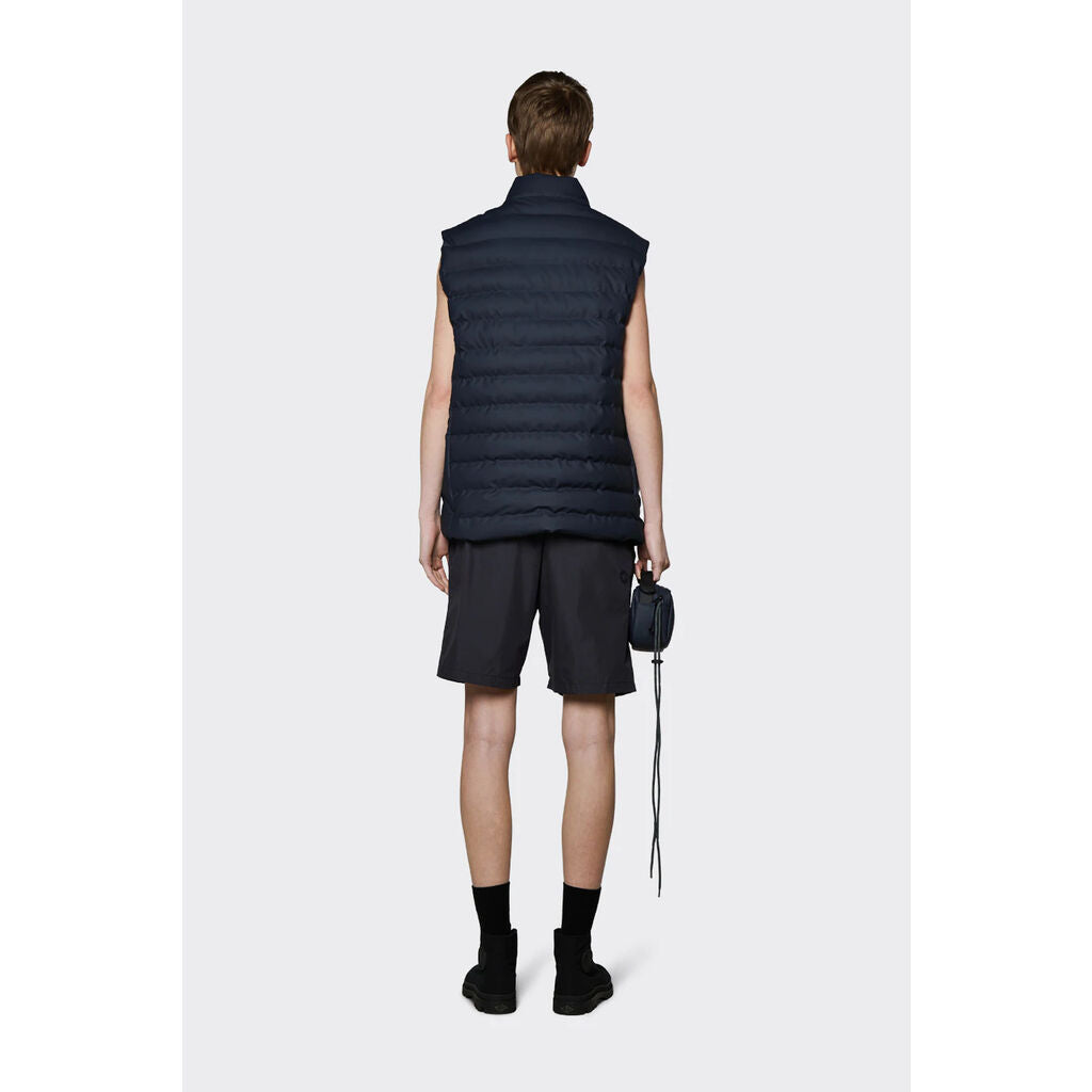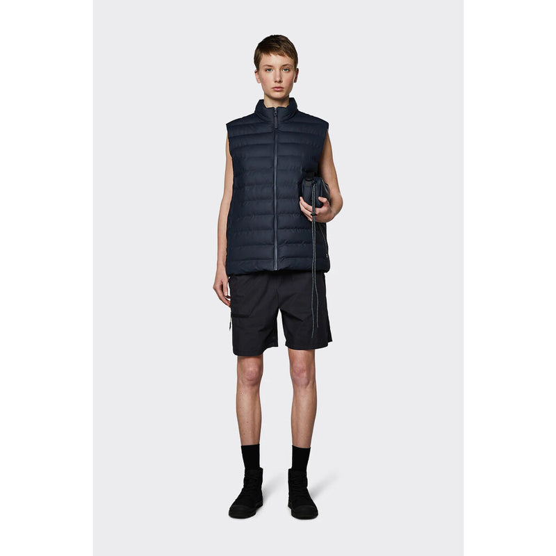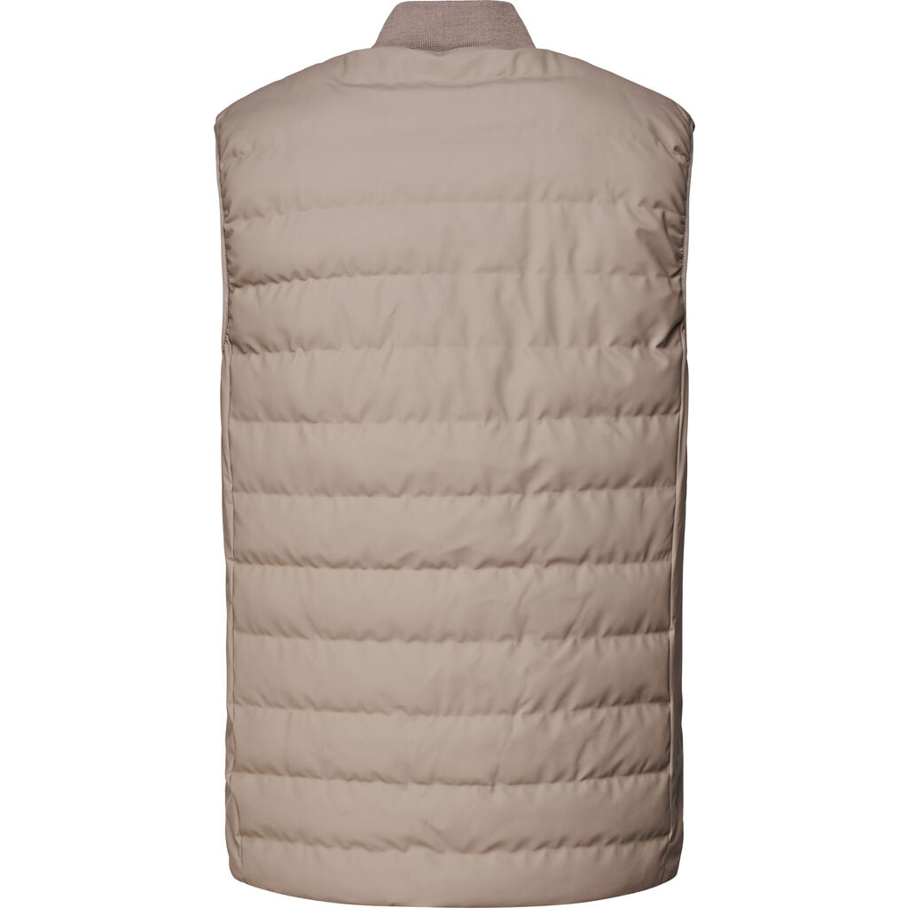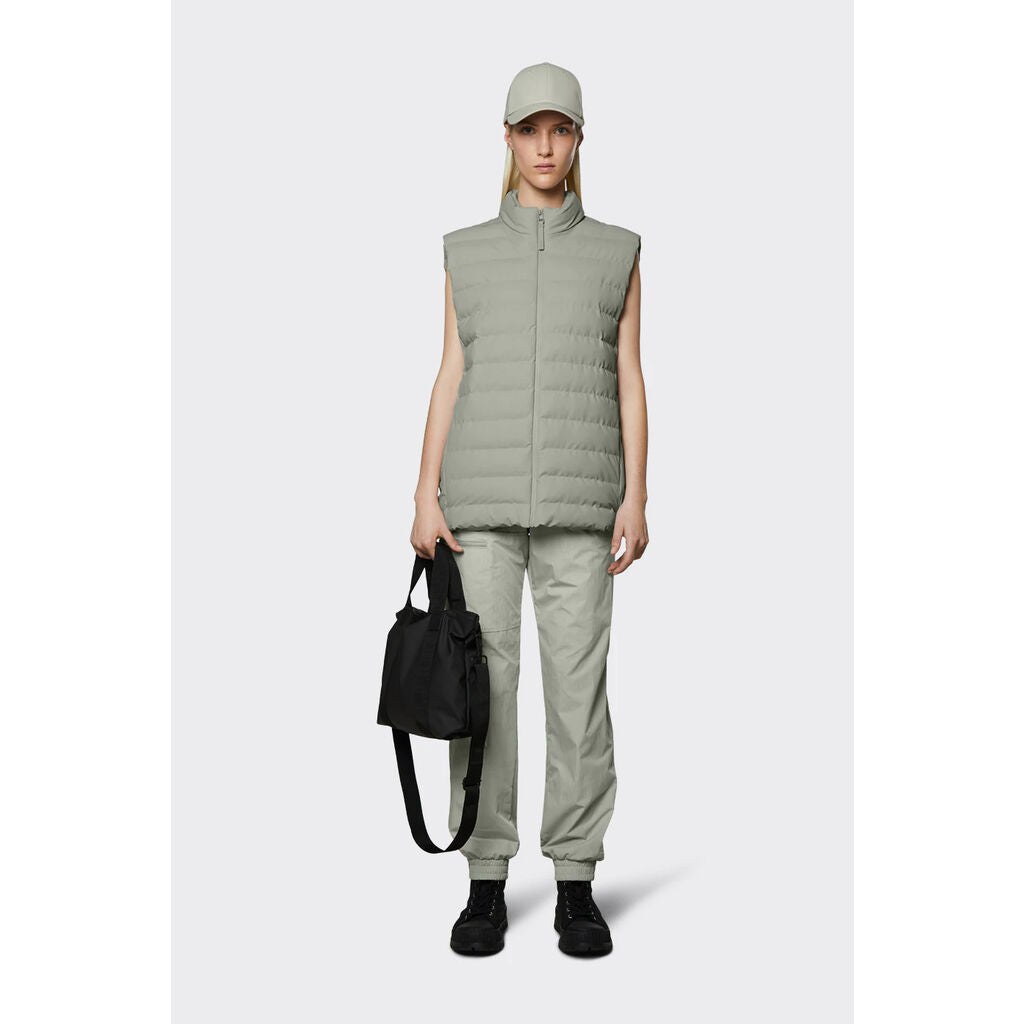 Breathability through Rain's signature waterproof, yet breathable, PU. Horizontally welded quilt lines run across the chest for warmth, and each side comprises a non-quilted panel for increased mobility. Trekker Vest also features hidden side pockets with zipper closure, a waterproof front zipper.