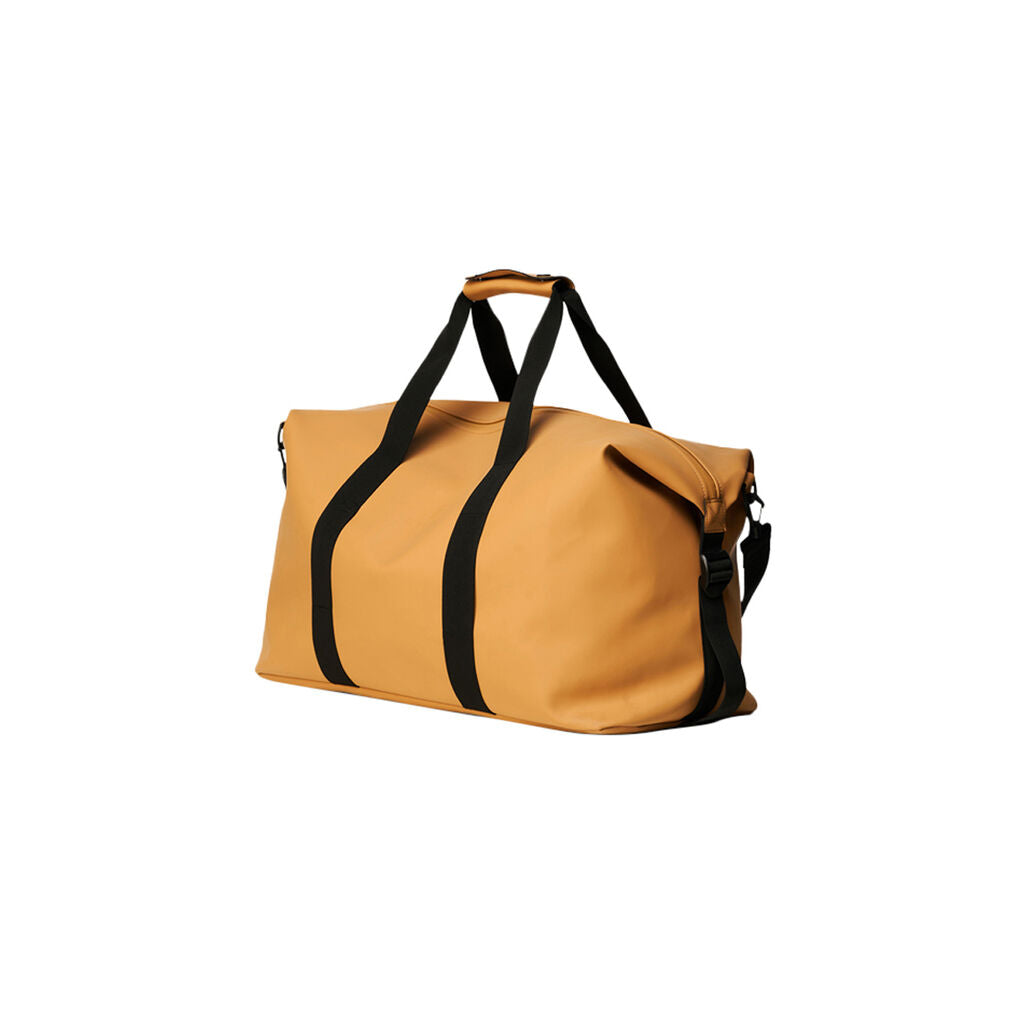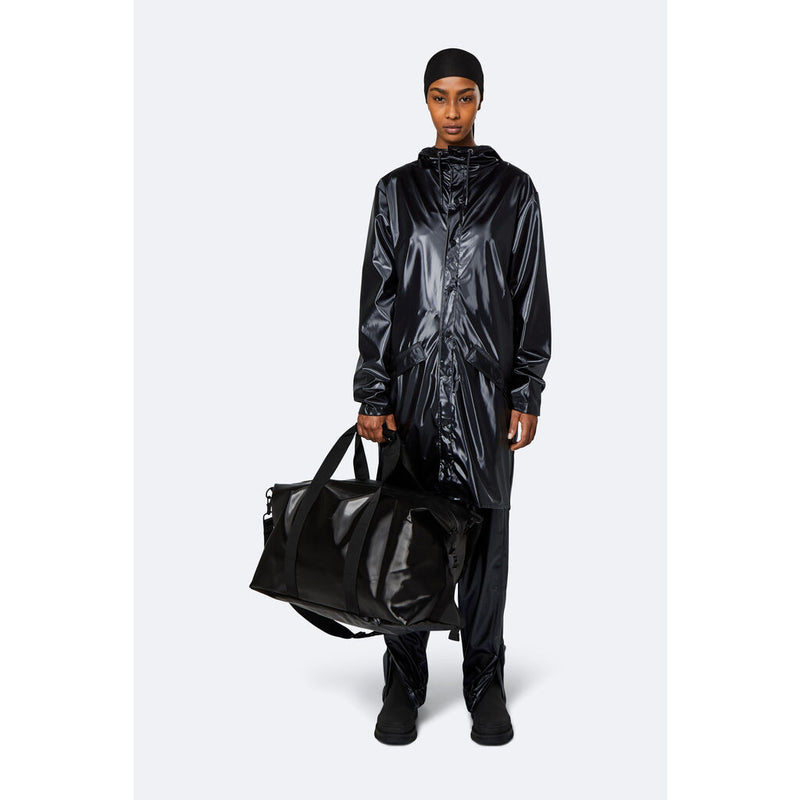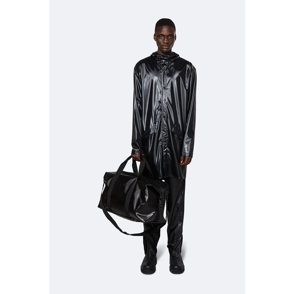 Weekend Bag is Rains’ interpretation of a classic travel bag. This essential Rains bag features a spacious main compartment, sturdy webbing handles, a detachable shoulder strap and adjustable lock slider buckles on the sides. Weekend Bag is made from a matte, waterproof fabric and completed with a water-resistant zipper and matte hardware.