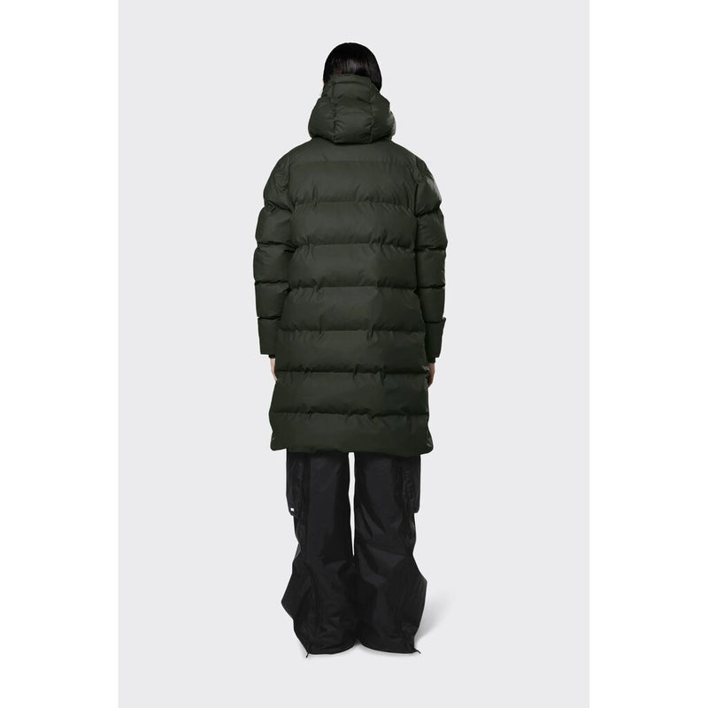 Rains present a fashionable long puffer jacket that is made for ultimate protection on winter days. This packable jacket is waterproof and windproof. Made from 100% polyester with a durable polyurethane coating. The design of our long puffer jacket is cut from Rains’ stitch-free quilted fabric with waterproof PU coating. The fabric is engineered for softness, volume, and warmth, paired with weather-resistant hardware in stainless steel and durable rubber. This jacket features ultrasonically double-welded seams, coated zip fastening, concealed storm cuffs, and concealed side pockets. The look is finished with a highly padded stand-up collar. This fleece-lined coat is designed to wrap you in ultimate comfort during cold winter days.