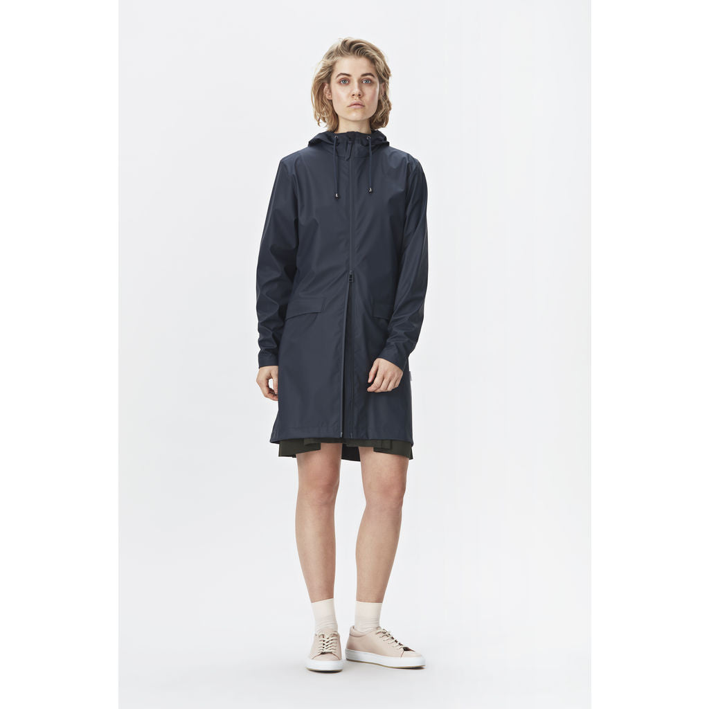 The Blue Women's Waterproof W Coat from RAINS is a classic and functional women’s rain jacket with a modern twist. There is a practical, adjustable cord at the waist, designed to emphasize the female silhouette. Made from a water-resistant lightweight fabric with a smooth and matte finish. Featuring a two-way aqua guard coil zipper and adjustable cuffs.