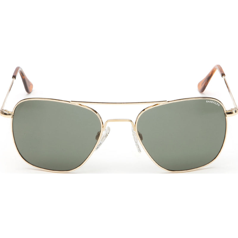 Keep your eyes safe from the suns harsh rays with the Aviator 23K Gold AGX Skull AR Sunglasses. This pair of shades boasts 23K gold frames that are sure to last. The Skull temples are designed to avoid pressure that causes headaches. Randolph Engineering originally built their classic Aviator for the U.S. Military, surpassing rigid mil-spec standards. As a standard issue since 1982, these sunglasses are battle tested and ready to take on the most rigorous and demanding use. Whether you're a pilot, taste-maker, or just someone that demands the best quality, you won't be disappointed. The AGX lenses have a relaxing green colored tint that helps filter color for reduced eye fatigue. It will give you excellent contrast for crisp viewing.