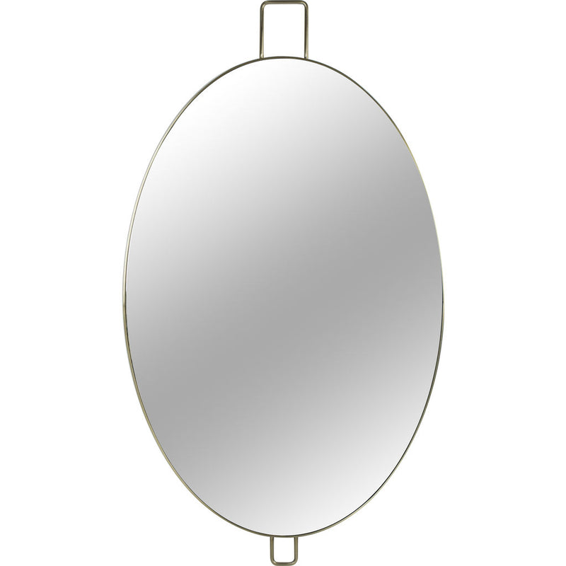A distinctive, ellipse shaped mirror with stainless steel trim and an intricately crafted loop handle detail. The Medium Fox wall mirrors versatile nature make it suitable to be placed horizontally or vertically. Gorgeous as a stand alone, or can be paired with the other two size variants, creating a trio of reflective elegance.