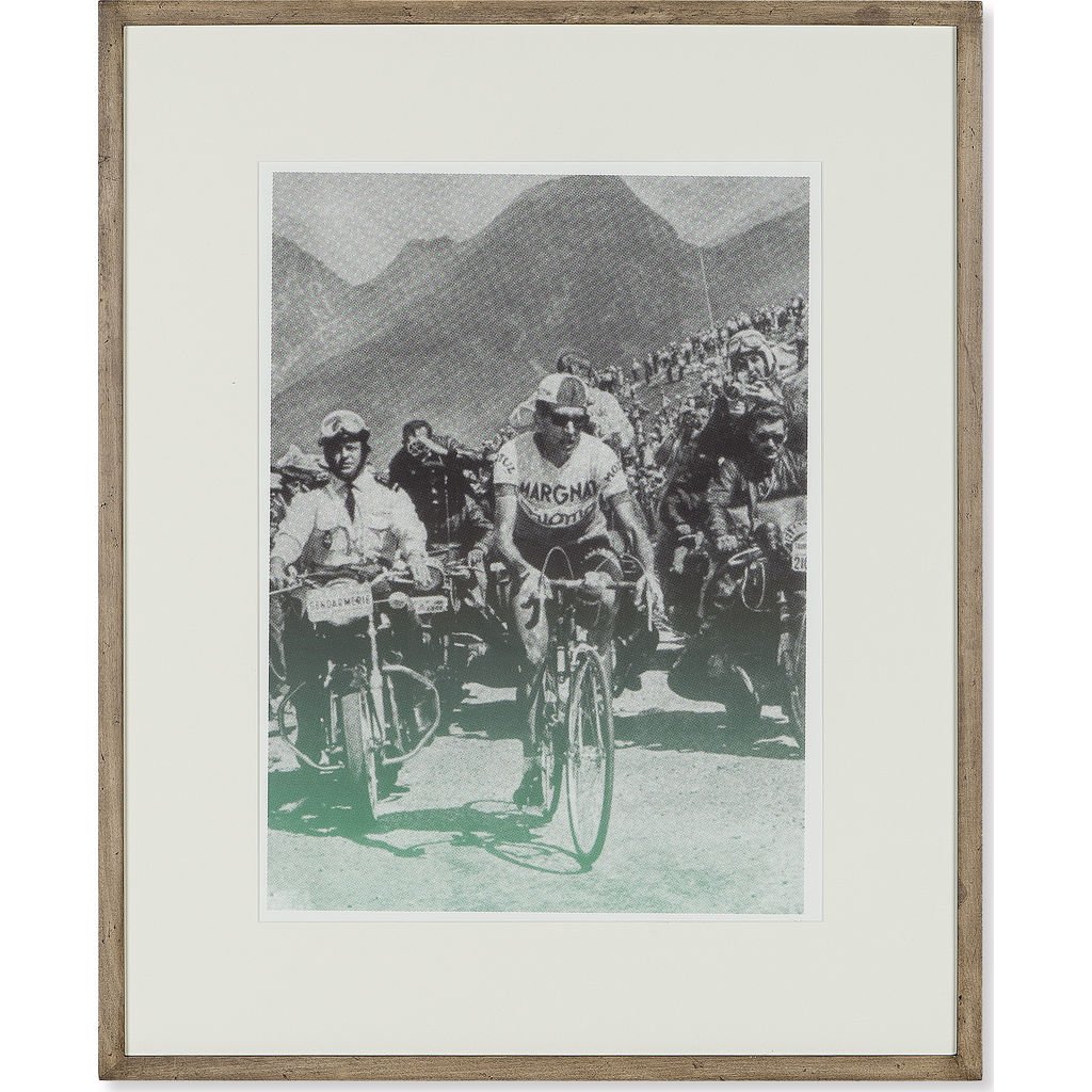 Managing to be historic and artistic all at once, this framed print from Resource Decor showcases an iconic scene from the 1964 Tour de France. Printed with a silk screen over archival paper, this timeless image is housed in a distressed wood frame to accentuate its vintage nature.