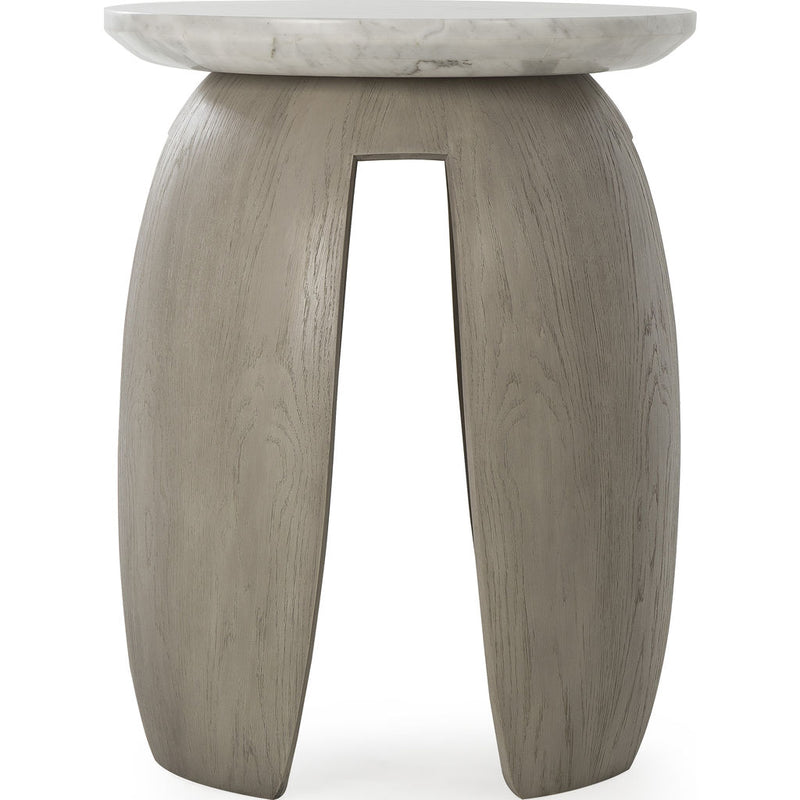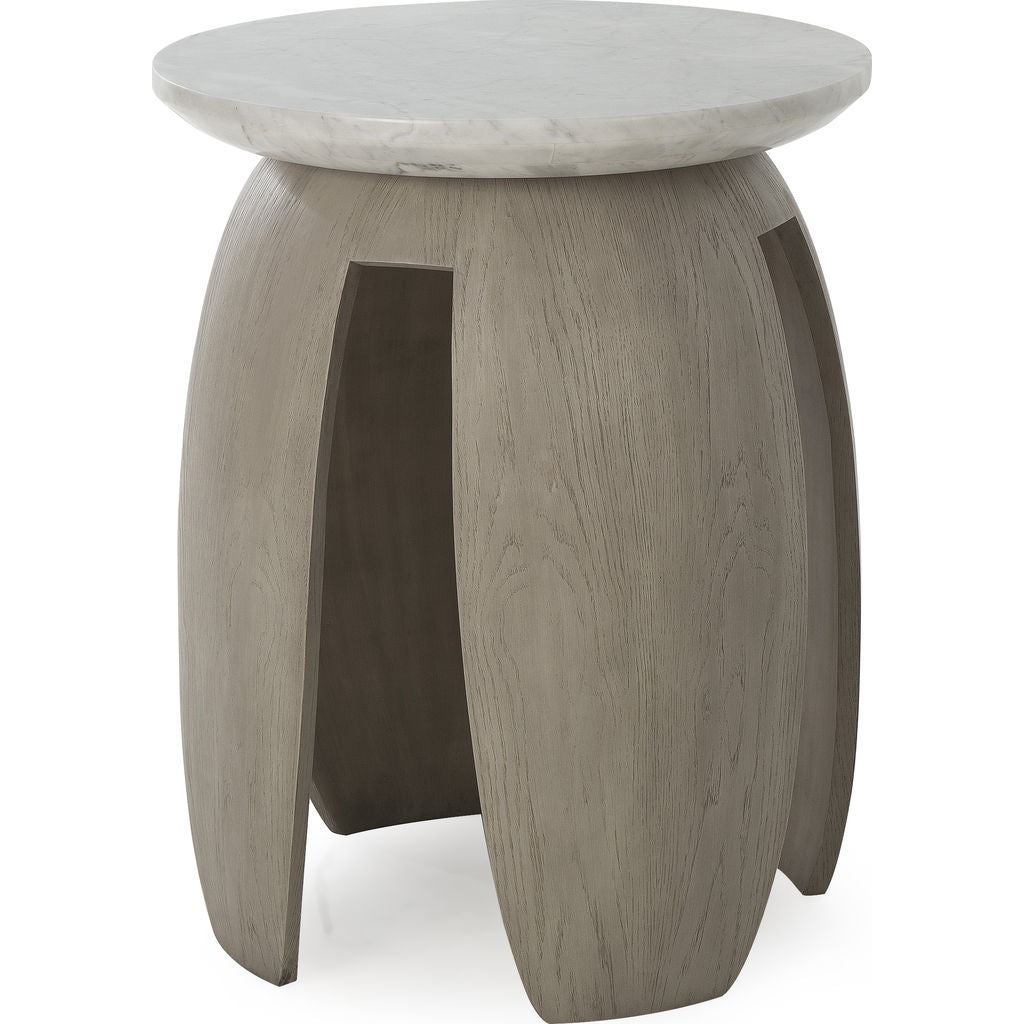 The Gray Pedestal Table in Solid Resin from Resource Decor is designed by Kelly Hoppen with her signature finish. A twist on your classic side table for its cut-out details, round white marble top, and Wood base will add dimension in a minimalist design. Its clean lines, neutral tones, and different textures add depth and sophistication that everyone will be admiring.