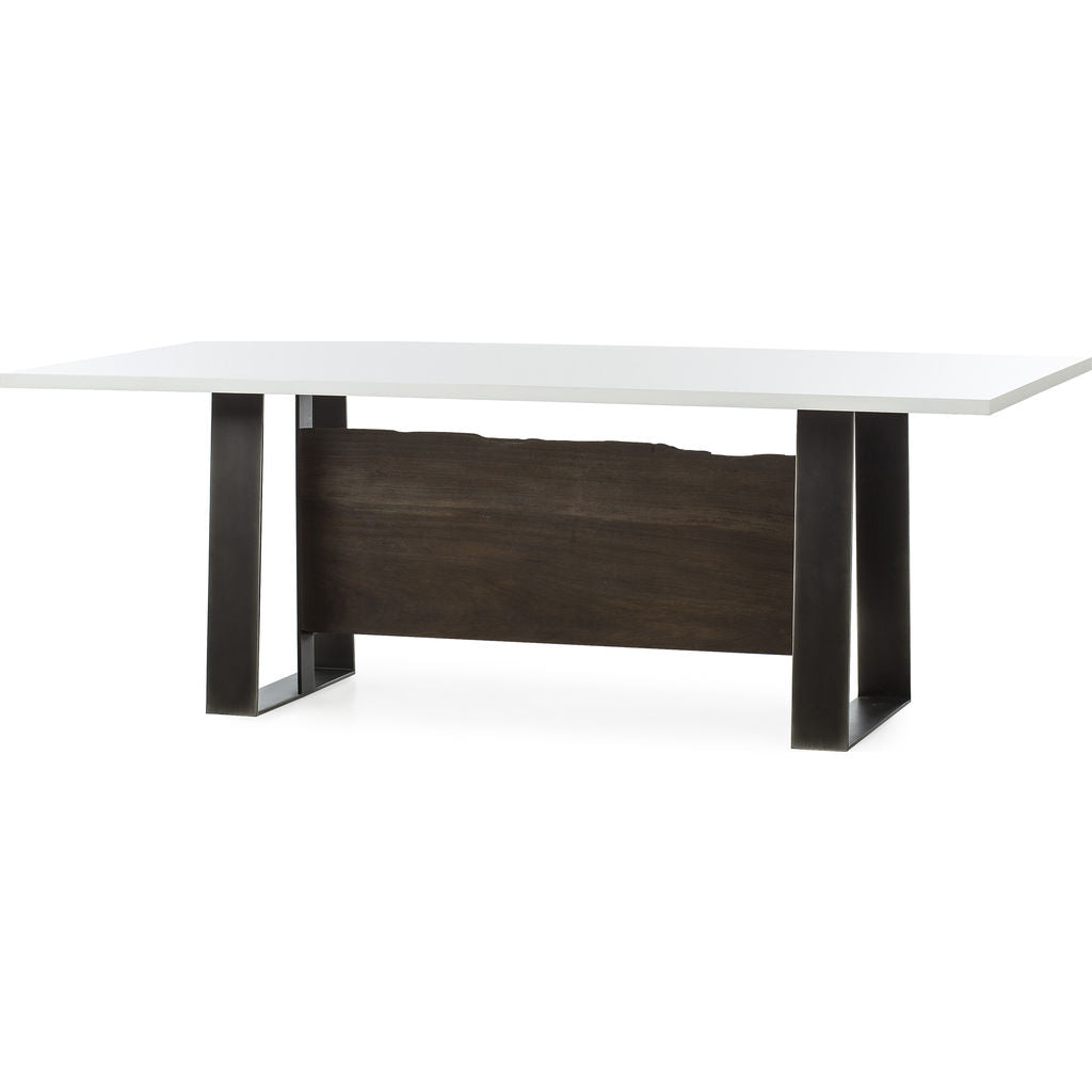 Bold with clean lines, the Jordan Dinning Table in White Acrylic from Resource Decor is designed by Thomas Bina for a new modern table. Crafted with Cashew Solids, Steel Base, and White Lacquered Top. This center piece will add a fresh and sophisticated look at dinner parties.