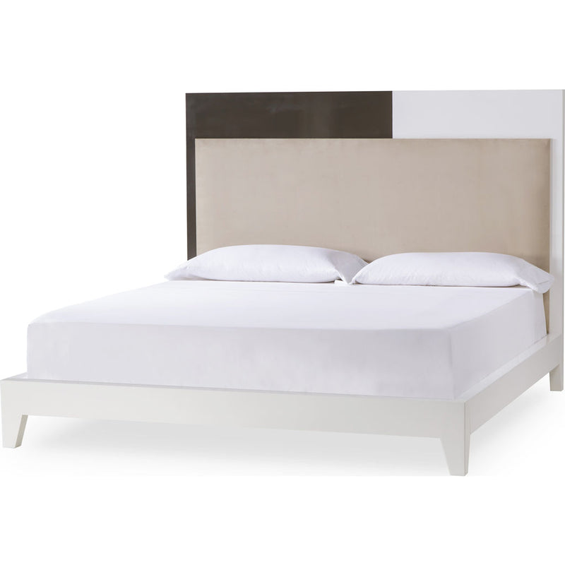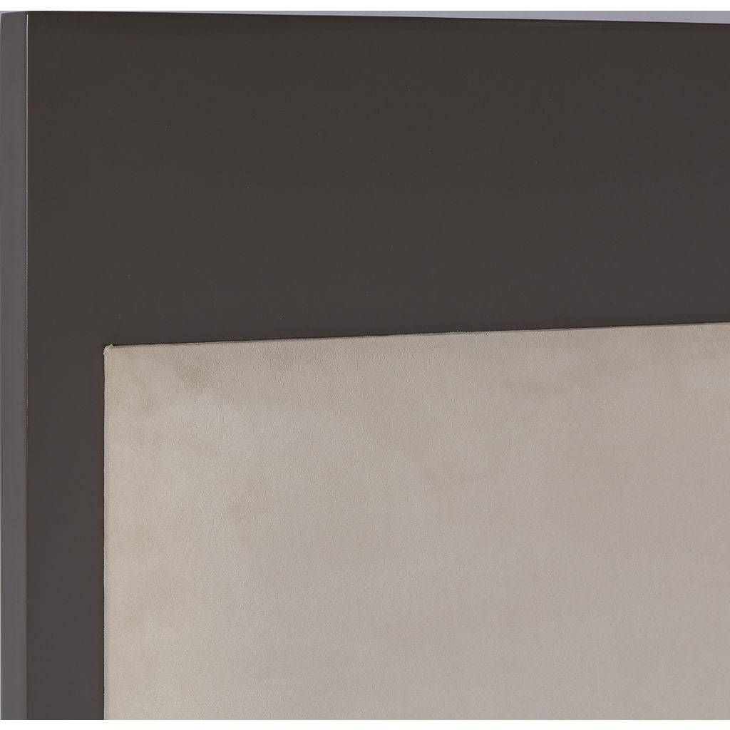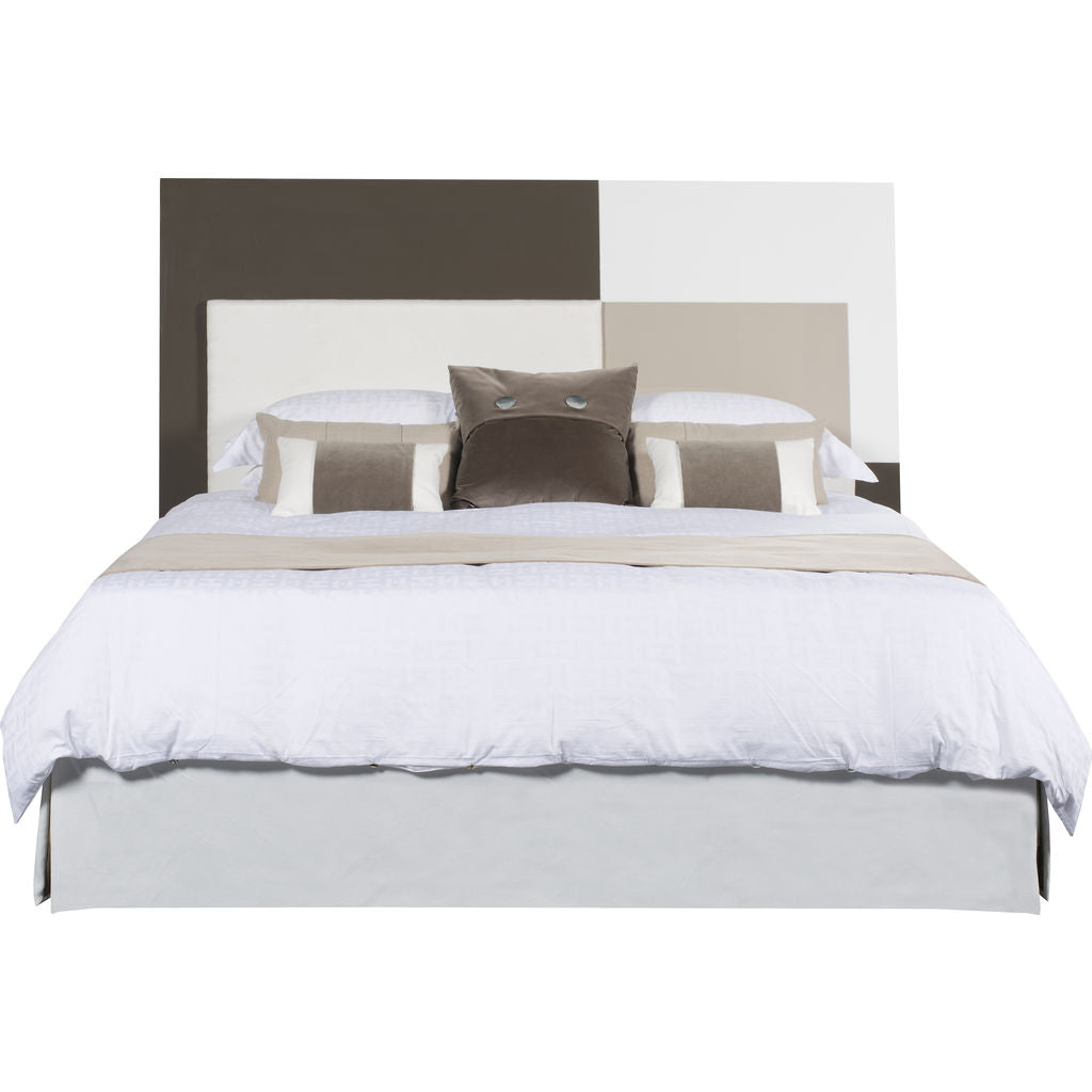 Alluding to iconic print by Piet Mondrian, the Mondrian King Size Bed frame features a headboard that combines khaki and snow white lacquer with an removable faux suede upholstered panel. Designer Kelly Hoppen's contemporary aesthetic comes through in this bed frame's white frame, clean-lined design and tapered legs.