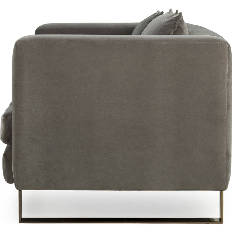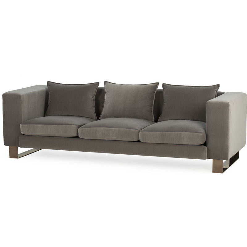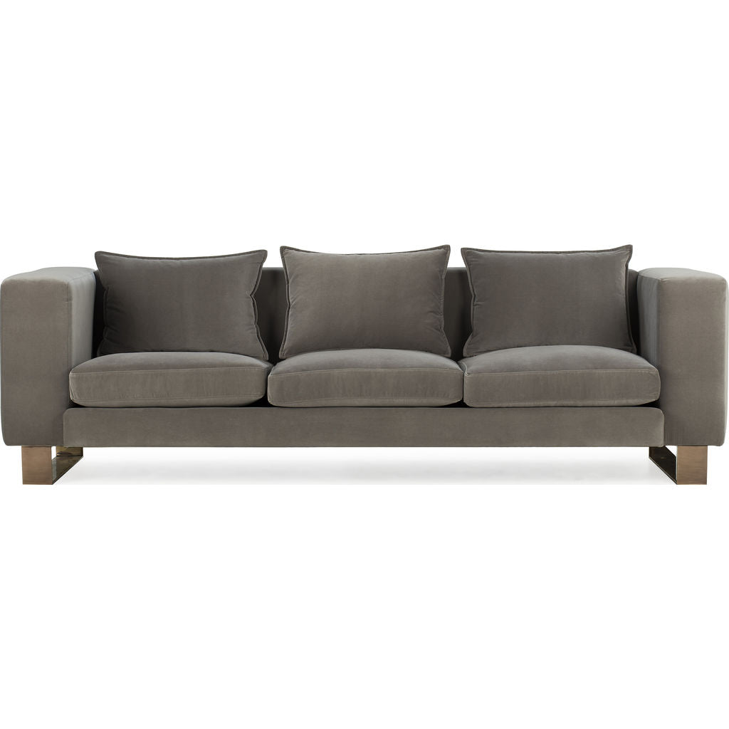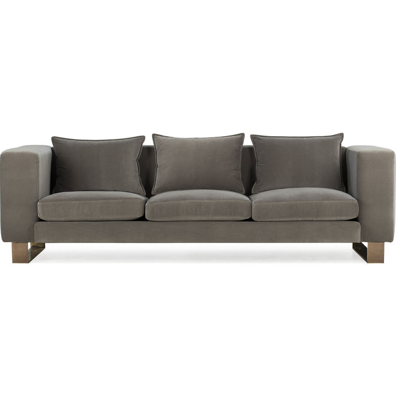 Kelly Hoppen designed the Monet with oversized arms and graphic sledge legs to offer a more masculine aesthetic to this couch. Soft, loose pillows are added to the composition, offsetting the clean lined profile and adding a hint of relaxed luxury.