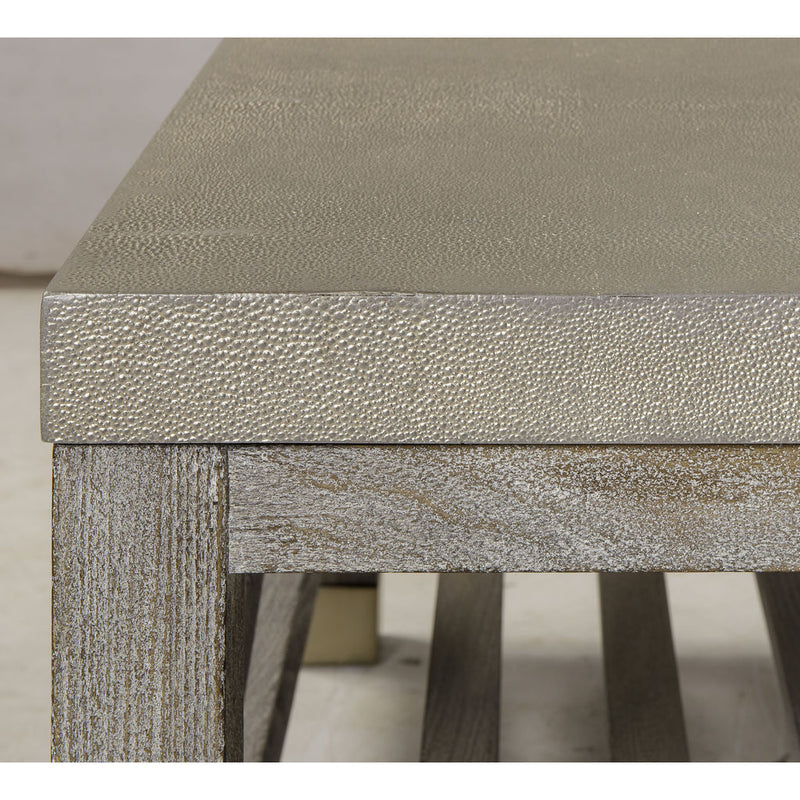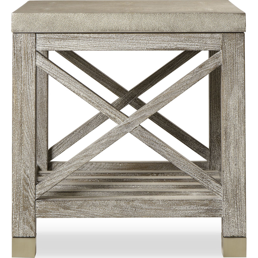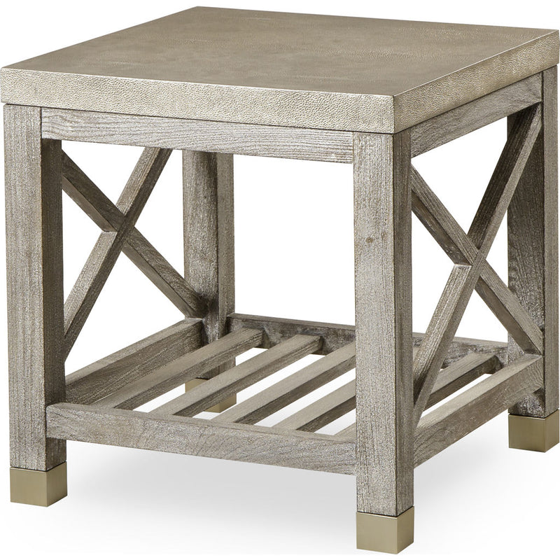 Elegant neutral tones combine with clean, geometric lines to bring you another interior accent piece from designer Andrew Martin and Resource Decor. Crafted from poplar wood sourced in the US, this tables striking contemporary appearance stems from the use of a champagne shagreen finish on the table top, and a wash gray finish on the end table's frame.
