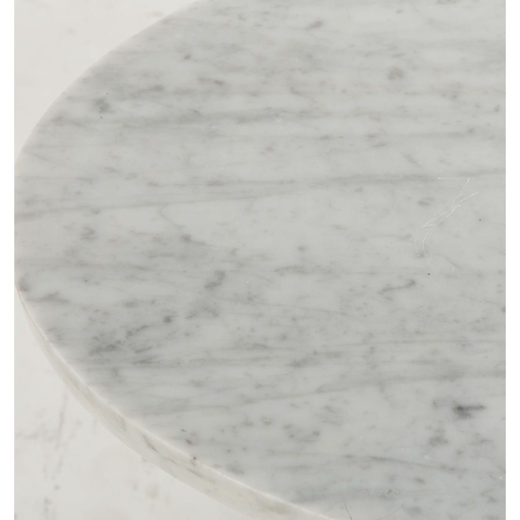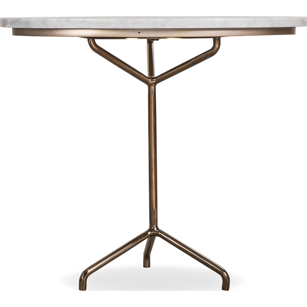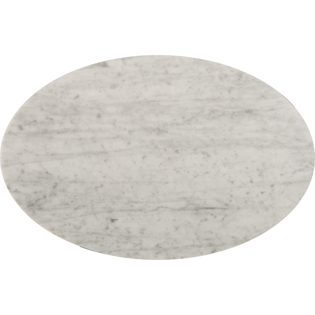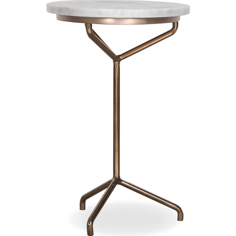 Designer Kelly Hoppen takes an elegant, minimalist approach with the Rose End Table. Crafted with a white marble table top and rose gold finished stainless steel base, this oval shaped side table captures a contemporary aesthetic with luxurious elements of mid century design.