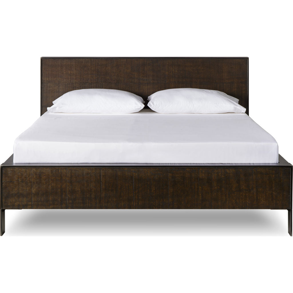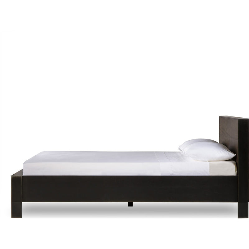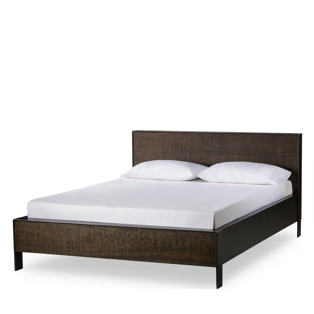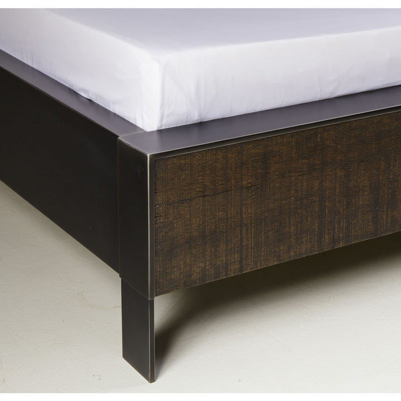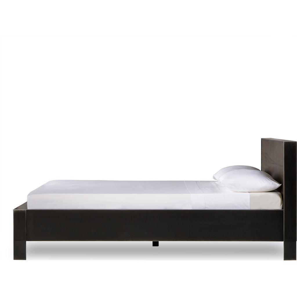 The Tribeca Bed was designed by Thomas Bina and features a cold-rolled steel frame with finished in a dark black coloration. The headboards and footboards of this bed showcase the natural grain and rustic character of Brazilian Walnut wood.