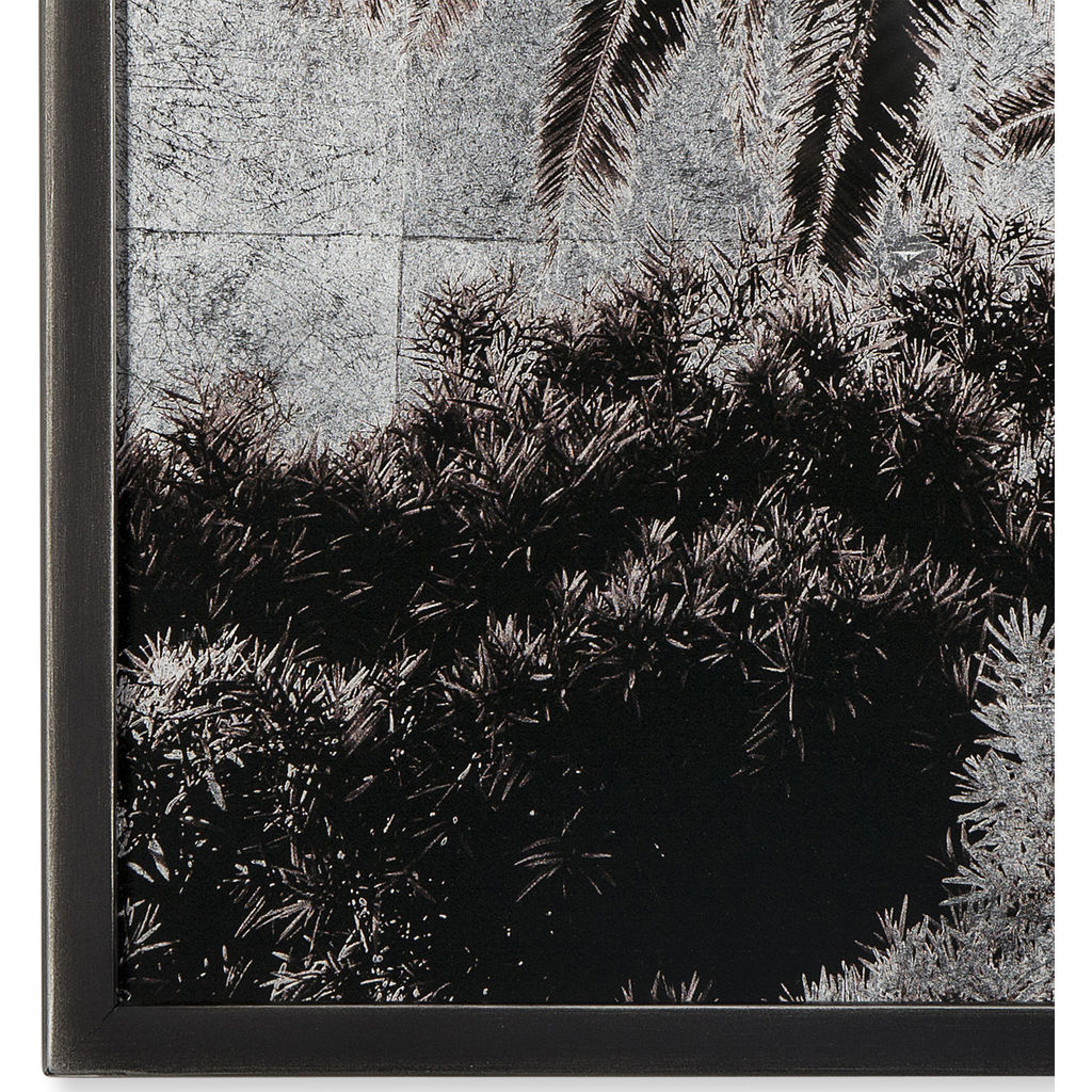 Designer Coup & Co printed an image of palm trees on Silver Lead Eglomise Glass to achieve this striking design. Each Silver Leaf Venice Print is housed in a solid wood frame.