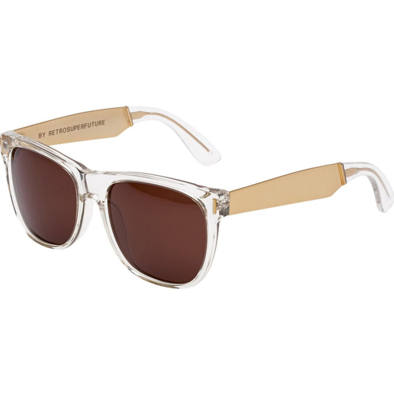 The Super Classic Sunglasses are just that, combining geometric design aspects with a two-tone aesthetic. The Zeiss lenses provide superb clarity while the simplistic Francis Crystal and Gold framework makes a statement beyond quality of craftsmanship.