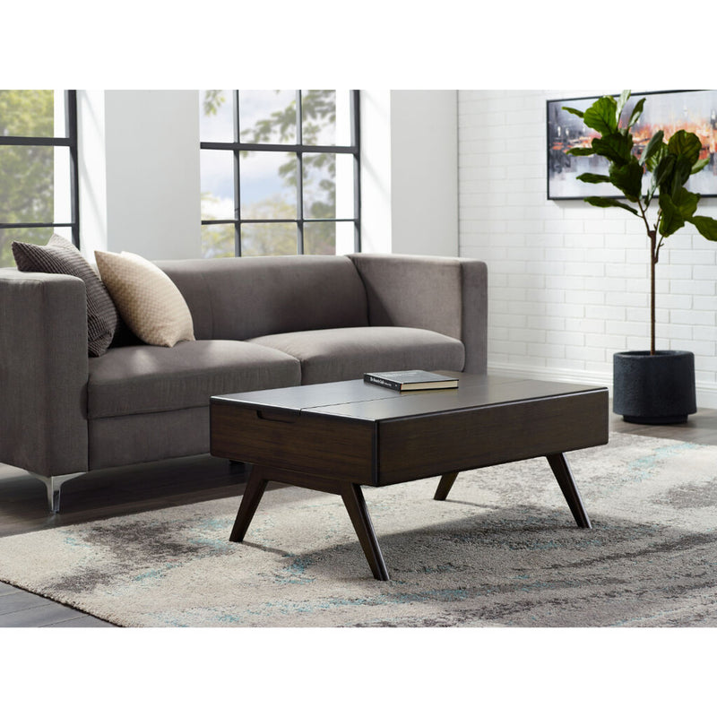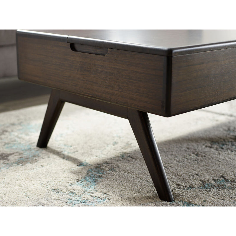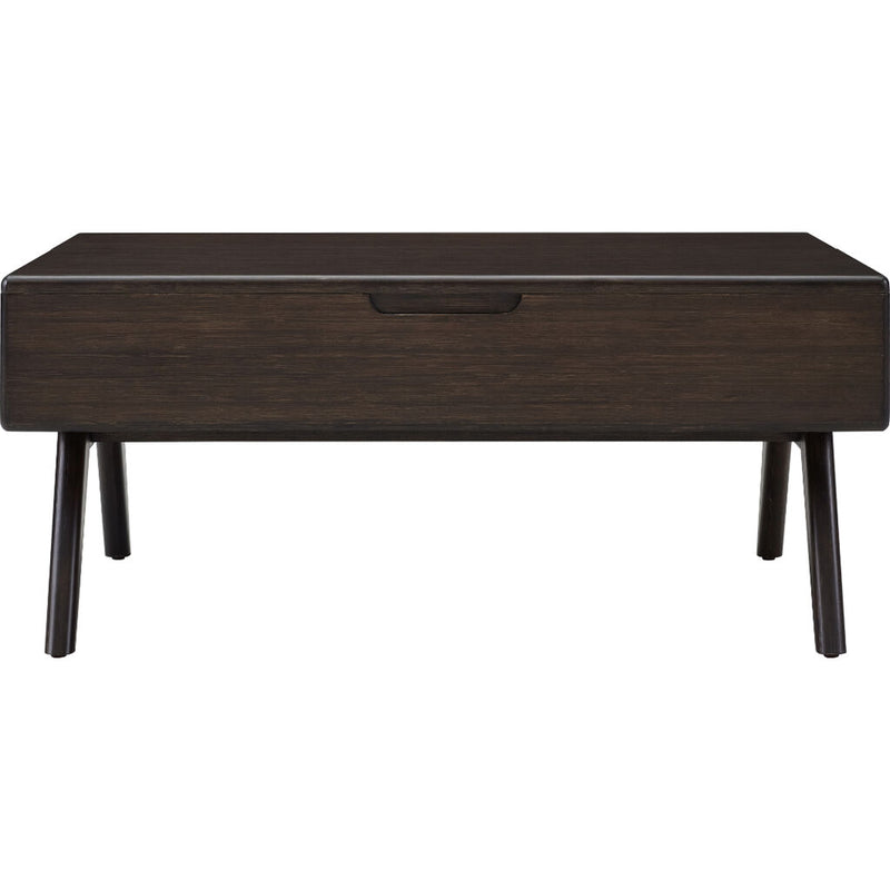 The Rhody Lift Top storage coffee table offers all that’s great about mid-century design. Beautifully finished on all 4 sides, the Rhody’s effortless lift top work surface reveals hidden interior storage, bringing style and essential function to your living space. Expertly crafted in earth friendly solid bamboo, and shown in our Caramelized. Variation in grain and color enrich the natural beauty of bamboo furniture and make each piece unique. Slight differences in bamboo shade colors are signs that the furniture has been crafted from solid bamboo and is considered a benchmark of quality. Ships fully assembled.
