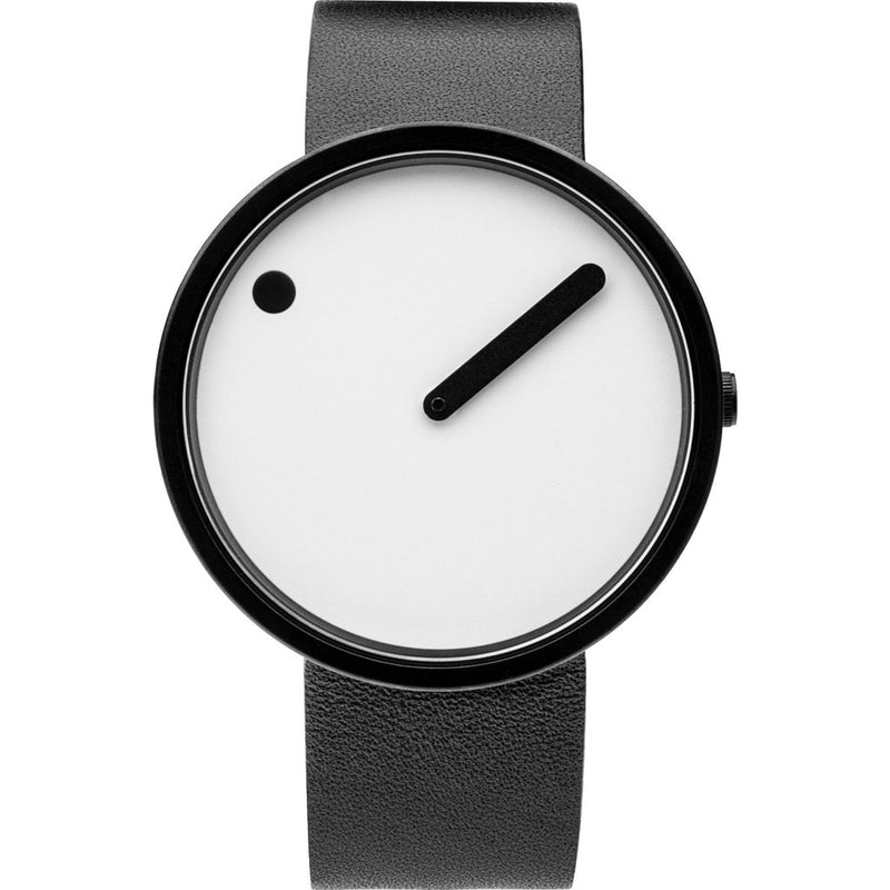 Steen Georg Christensen and his partner Erling Andersen had a vision to craft a watch that focuses on the minutes. The Rosendahl Picto 40mm White Analog Watch does just that. A true piece of art, this watch displays the hour with a dot on a rotating dial while the prominent minute hand ensures precise time-telling. Constructed with mineral crystal, this watch is designed with a white dial, a black case, a black hand and is finished with a black leather band.