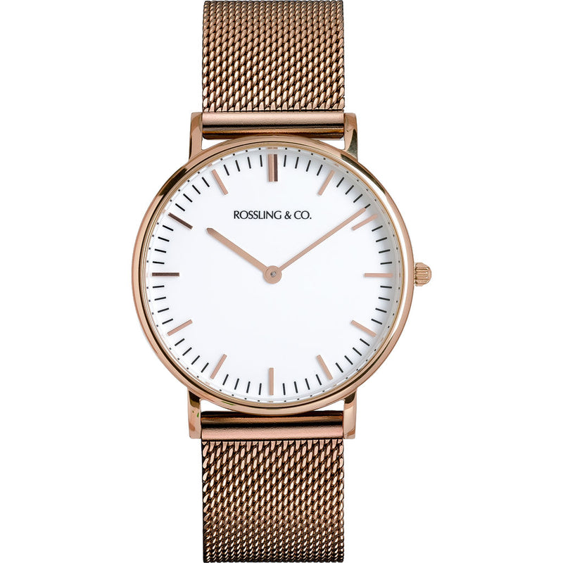Rossling and Co. takes the timeless analog watch and gives it a sleek, style conscious make-over to bring you the Classic 36mm. Featuring an ultra-thin case and finished with a rose gold mesh strap, this wristwatch boasts understated class with a contemporary flare. Between the stainless steel casing and scratch-resistant crystal lens, Rossling and Co.'s refined craftsmanship produces a timepiece with style, elegance and durability.