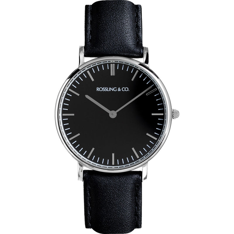 Rossling & Co. strives to craft quality watches that are both stylish and versatile. The Classic 36mm Rogart Watch is constructed with a slim case, Swiss quartz movement and is finished with an elegant leather strap. The sleek black dial is housed in a stainless steel case. Whether you dress it up or down, this watch is perfect for any occasion.
