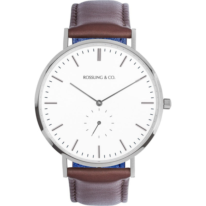 Rossling & Co. strives to craft quality watches that are both stylish and versatile. The Classic 40mm Westhill Watch is constructed with a slim case, Swiss quartz movement and is finished with a leather strap. The sleek white dial is housed in a silver case. Whether you dress it up or down, this watch is perfect for any occasion.