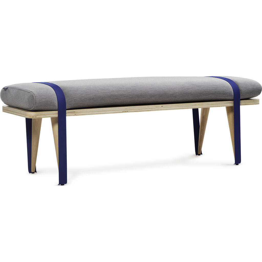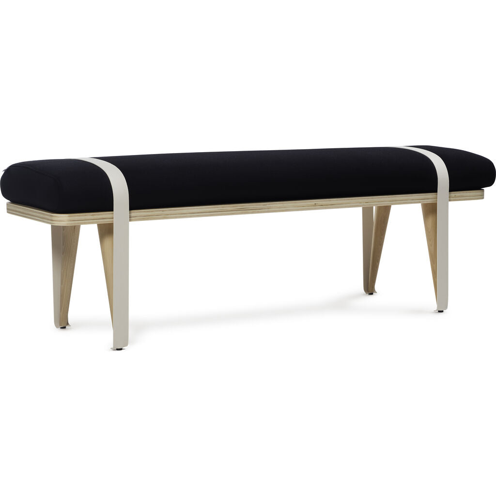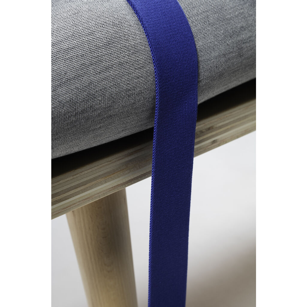 The On the road bench has nothing added, nothing superfluous. It is just as it is: a natural and discreet bench, inspired by a long motorcycle journey on Route 66. Maybe that's why it begs to be put it in any place you like and not to be installed as a static, fixed item. Monotony is not for this bench. The two elastic tapes stretch from the feet to hold the cushion down and give it personality, without giving up its simple character. Comfortable and easy to enjoy, this bench wants to be on the move, tying together a variety of rooms in your contemporary home.