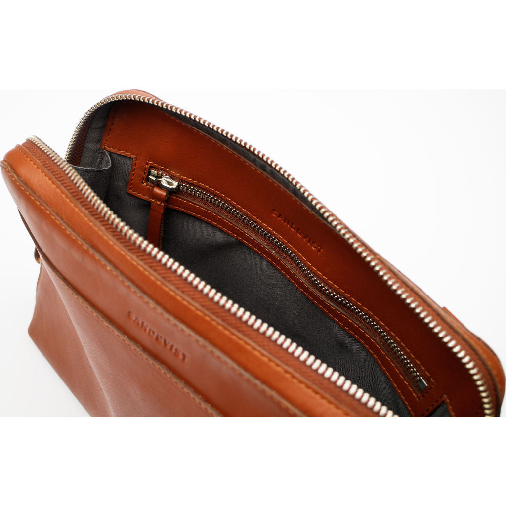 The Cognac Anna Shoulder Bag by Sandqvist pays homage to the classic purse with its elegant, minimalist aesthetic. This versatile bag's shoulder strap is adjustable and removable, which enables it to double as a clutch or hand bag. Between the two slip pockets and single zipper pocket, the Anna is sure to keep all your belongings organized despite its compact size. Each and every Anna Shoulder Bag is made with full grain, vegetable tanned leather that ages beautifully over time.