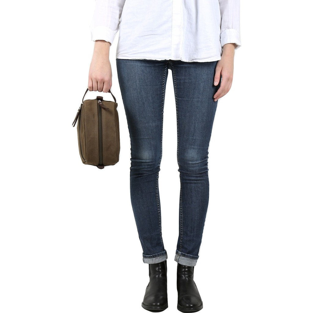 Sandqvist created the Mickel Dopp Kit in Waxed Khaki for those who enjoy staying organized. Made with waxed heavy cotton canvas, this little bag features leather details, an outer zipper pocket, four inner slip pockets, and grey nylon lining.