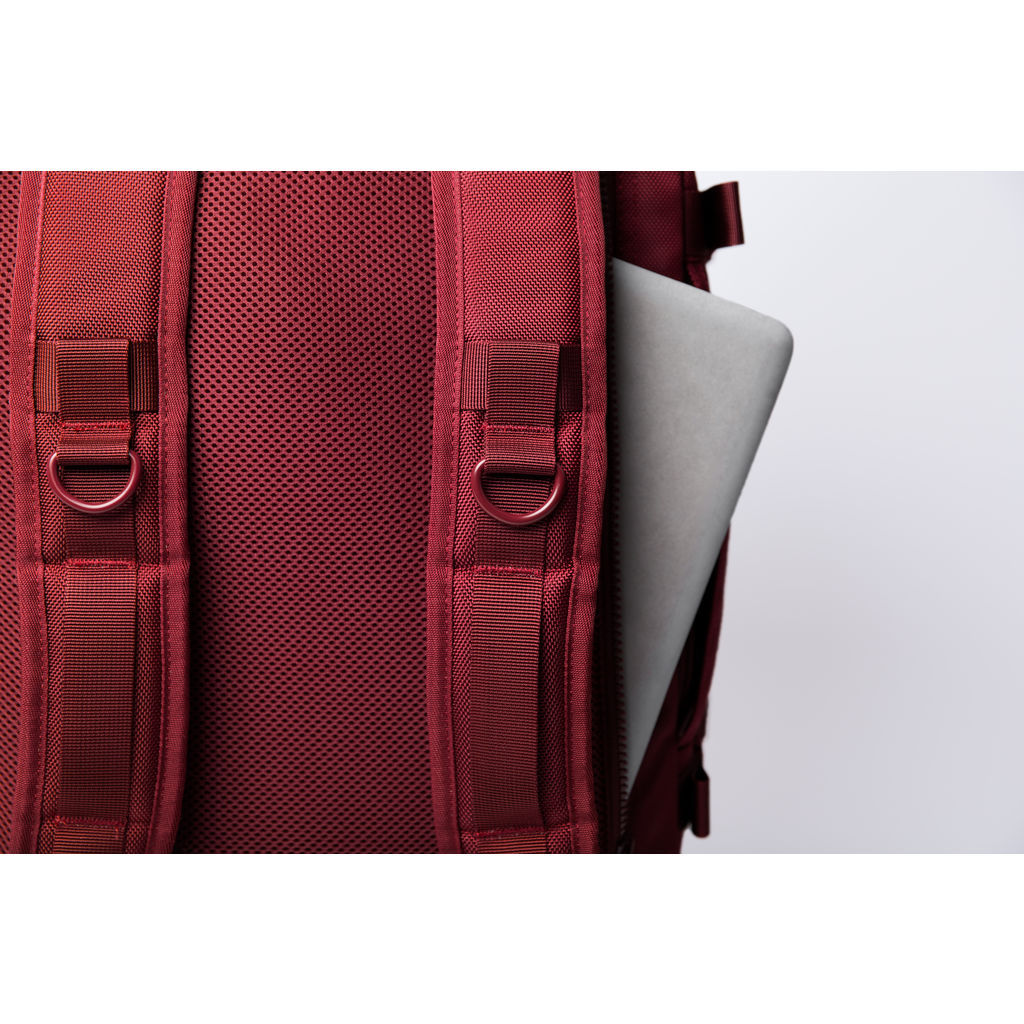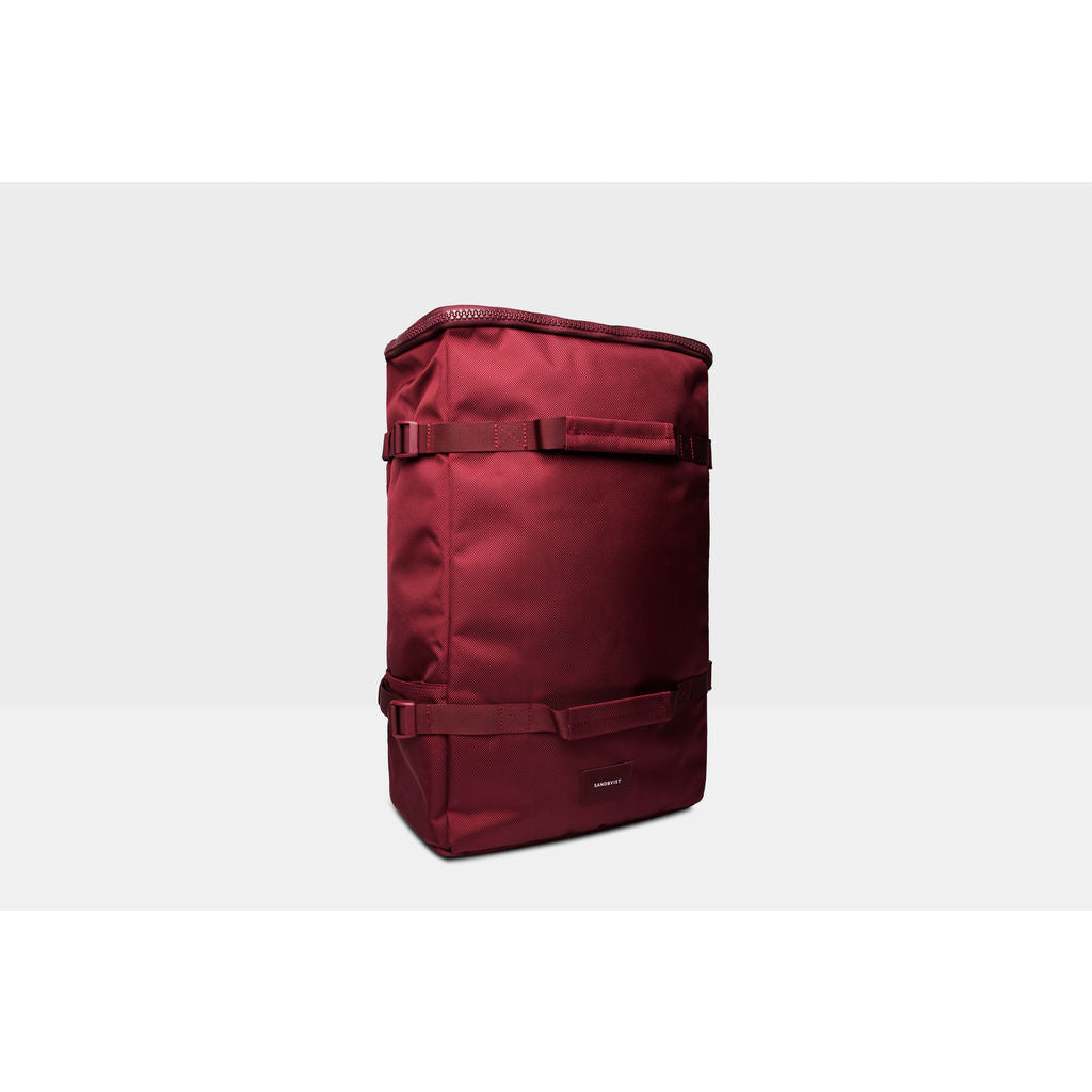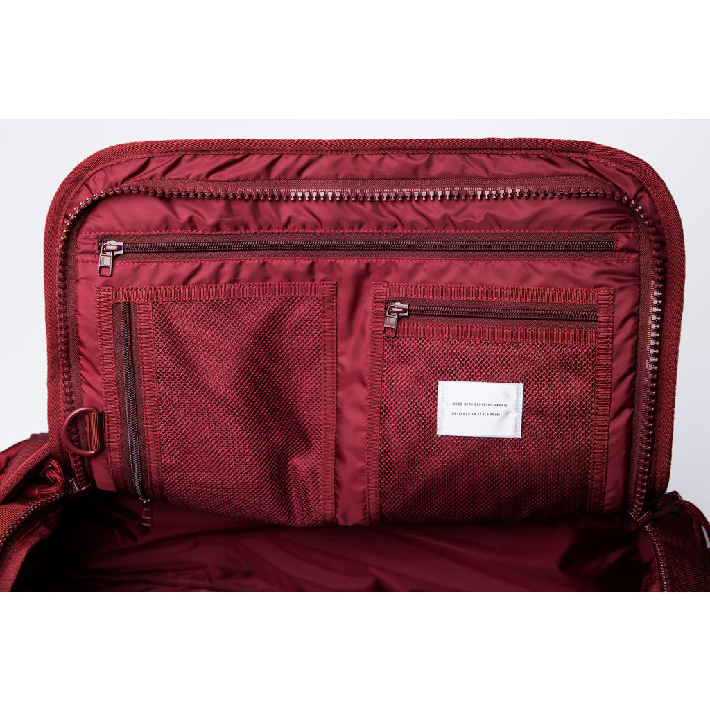 A sophisticated duffel and backpack all in one, the Burgundy Zack S from Sandqvist captures the same modern functionality as the original in a space-saving package. Crafted from extremely durable Cordua EcoMade ripstop and ballistic polyester, the Small Zack Backpack Duffel's clean lined design highlights the tactical nature of this fabric. Just to make sure this versatile pack meets all your commuting needs, it has been outfitted with a padded laptop sleeve and multiple interior pockets.