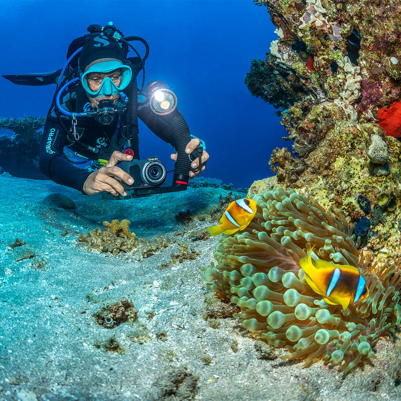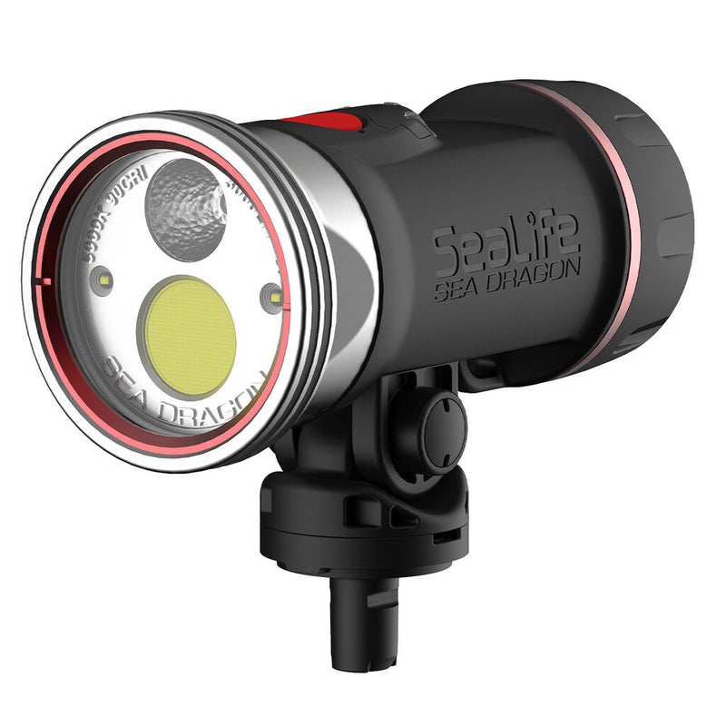 The compact Sea Dragon 3000SF Pro Dual Beam Photo-Video light is the perfect all-around photo, video, and dive light. With a simple one-button push, you can switch from the wide 3000 lumen 120° beam to a narrow 1500 lumen 15° spot beam. For imaging, the spot beam offers many creative opportunities such as to create a narrowly focused snoot or stage spotlight effect. The spot beam also serves as a primary or secondary dive light for most diving applications. Two red LEDs make this the perfect light combination for both day and night dives.