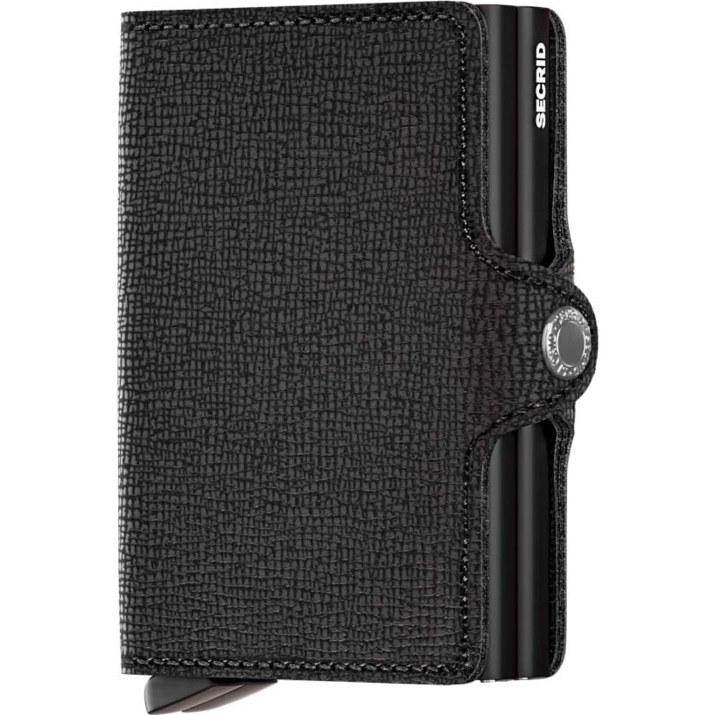 The Black Crisple Secrid Twinwallet can hold eight embossed cards or twelve flat cards. The leather interior of the Twinwallet offers enough space for about four extra cards, receipts and business cards.