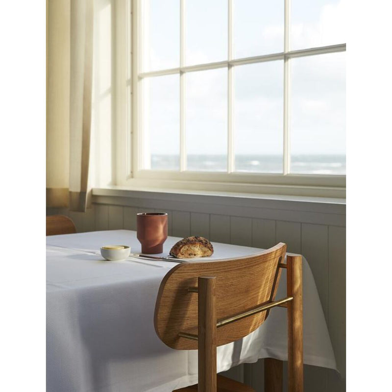 A transverse brass rod indicates where you pull out the chair. Legs that continue up into the backrest and become a small hook, where you can hang your purse. A body in golden oiled oak that naturally contrasts the details in brass. A dining chair is designed in a well-proportioned idiom, making it a comfortable seat. Vester Chair is elegant in a discreet way and understated without losing its momentum. Vester Chair is developed and produced by Skagerak for the seaside hotel, Svinkløv Badehotel.