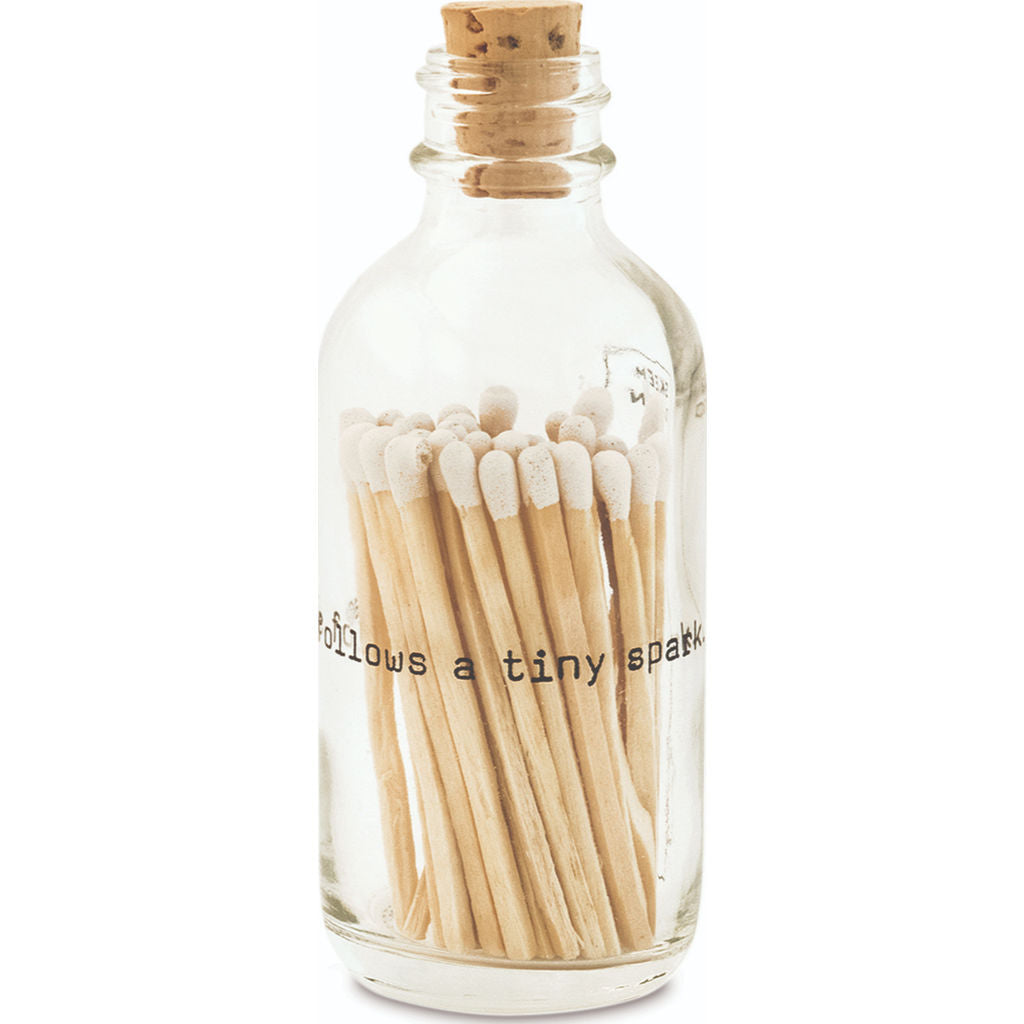 Display these beautiful delicate matches from Skeem Design on your shelf or mantle. The Mini Apothecary Poetry Matches in Black comes with 40, 2" matchsticks in an exclusive strike-on-bottle design with a cork lid and striker strip on the back of the bottle. Take these camping or leave them on your mantle for style when lighting your matches!