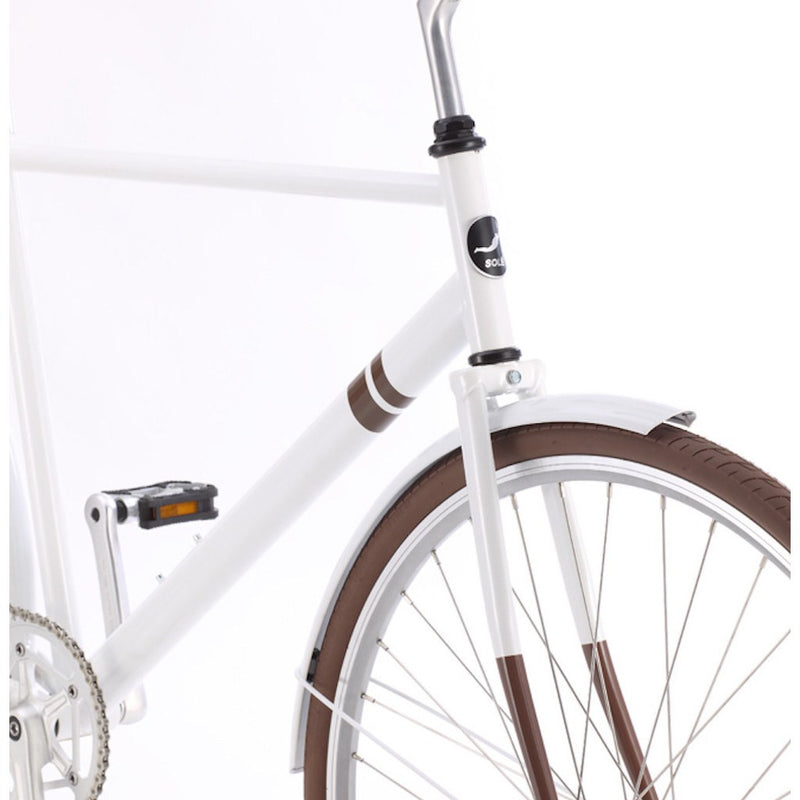 Sole Bikes are not about the destination but the journey. Perfectly designed for a balanced and comfortable ride, the Ayu City Cruiser in Gloss White and Brown features a single fixed speed to get you there as fast or slow as you want on most terrain. Pedal backwards to hit the breaks - no need to scramble to find the lever while well-cushioned tires make for an extra smooth ride. Sure, you might be getting to somewhere, but the way there is probably much more interesting. Sole bicycles come 90% assembled and pre-maintained so they're ready to ride in minutes.