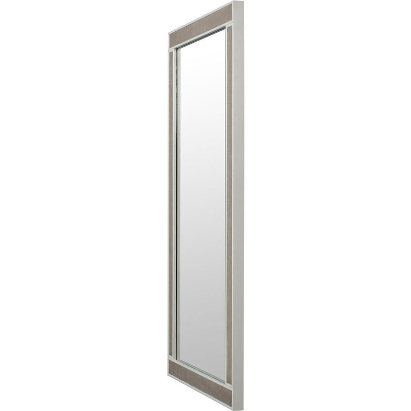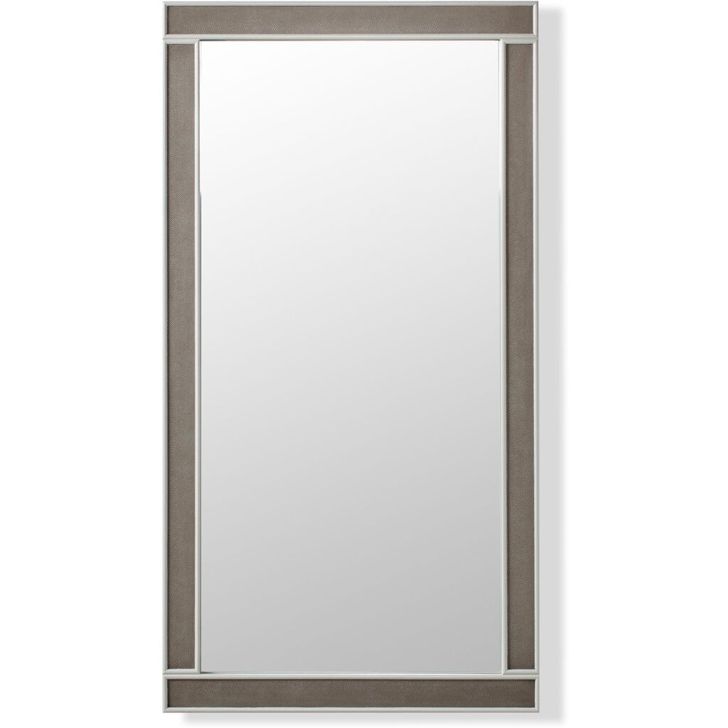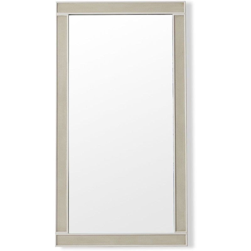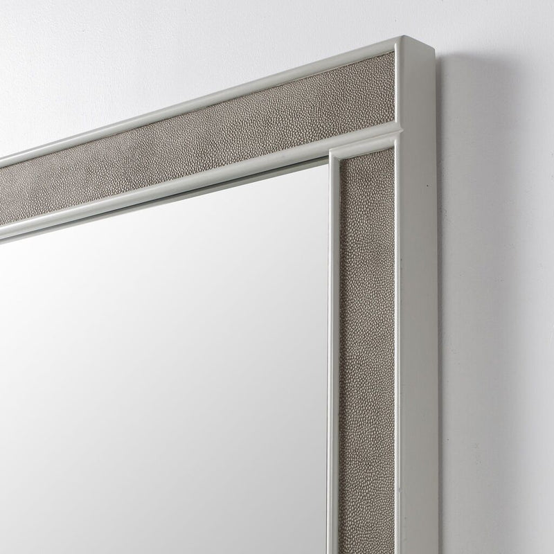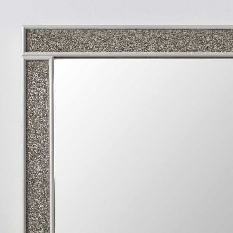 An embossed faux shagreen leather frame gives this sleek wall mounted mirror timeless appeal. Suitable to hang in a hallway, or pair it above the Alice Drawer Dresser.? Due to the nature of shagreen, the coloring may vary from one piece to another, these differences add to the natural beauty of the product. The color may also vary with time.