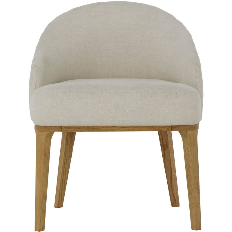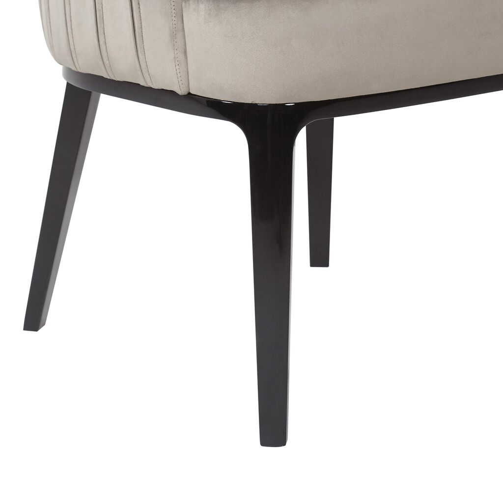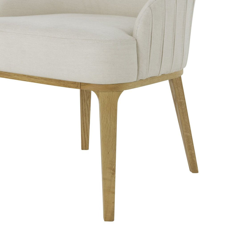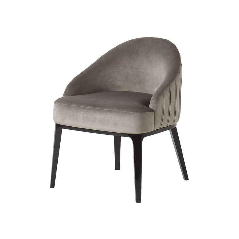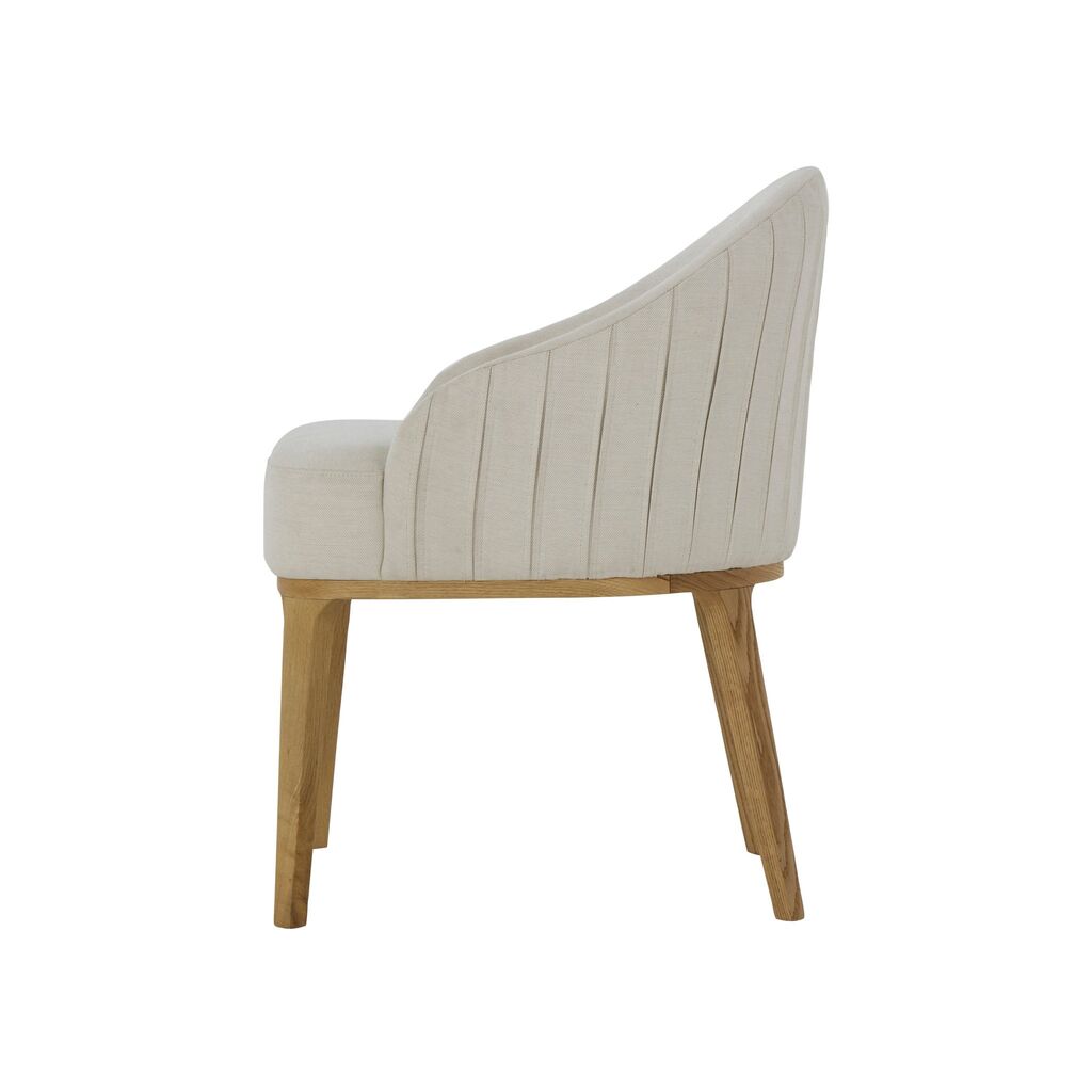 Quintessentially transitional; this low-backed upholstered dining chair provides supportive seating, with vertical pleated stitch detailing which adds visual interest. Resting on beautifully tapered solid wood legs.