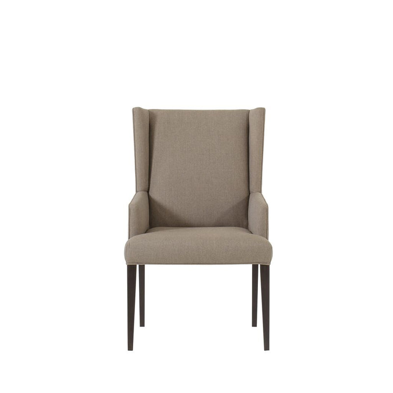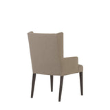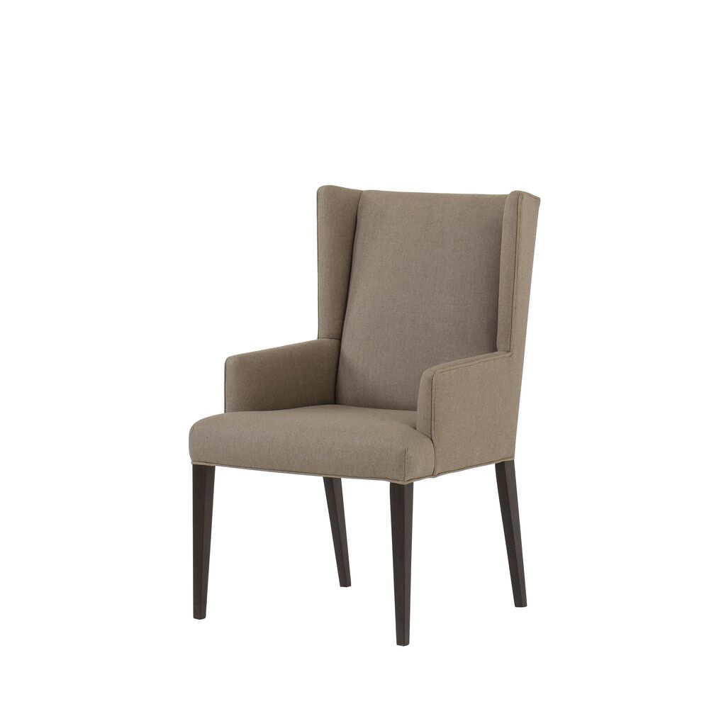 Dining armchair furnished with wood and textile. Elegantly designed for simple interiors.