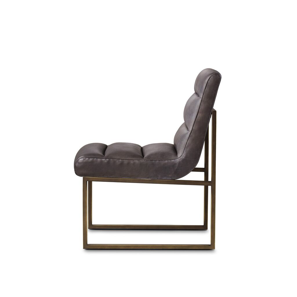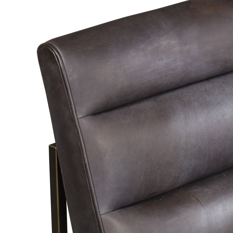 Rich and refined, this side chair pairs a channeled leather seat and back with an oiled bronze base. A ribbed seat gives it a clean, refined appearance and adds extra comfort.