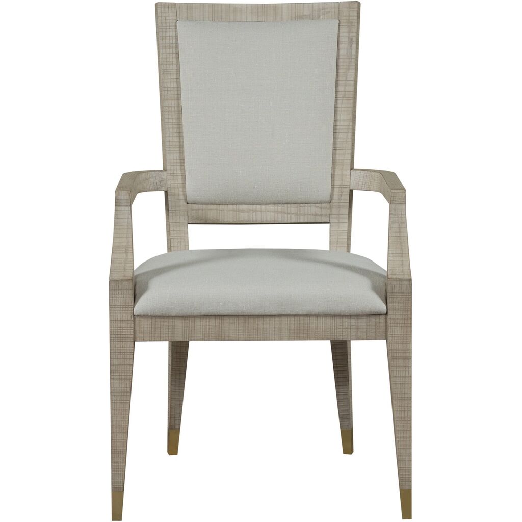 Create a light and breezy air of sophistication at your dining table with the addition of the Raffles Arm Chair. Elegant parson forms, fine lines and textured parchment finish, coupled with an upholstered back and seat offset with ferrules give ways to a relaxed and coastal aesthetic.