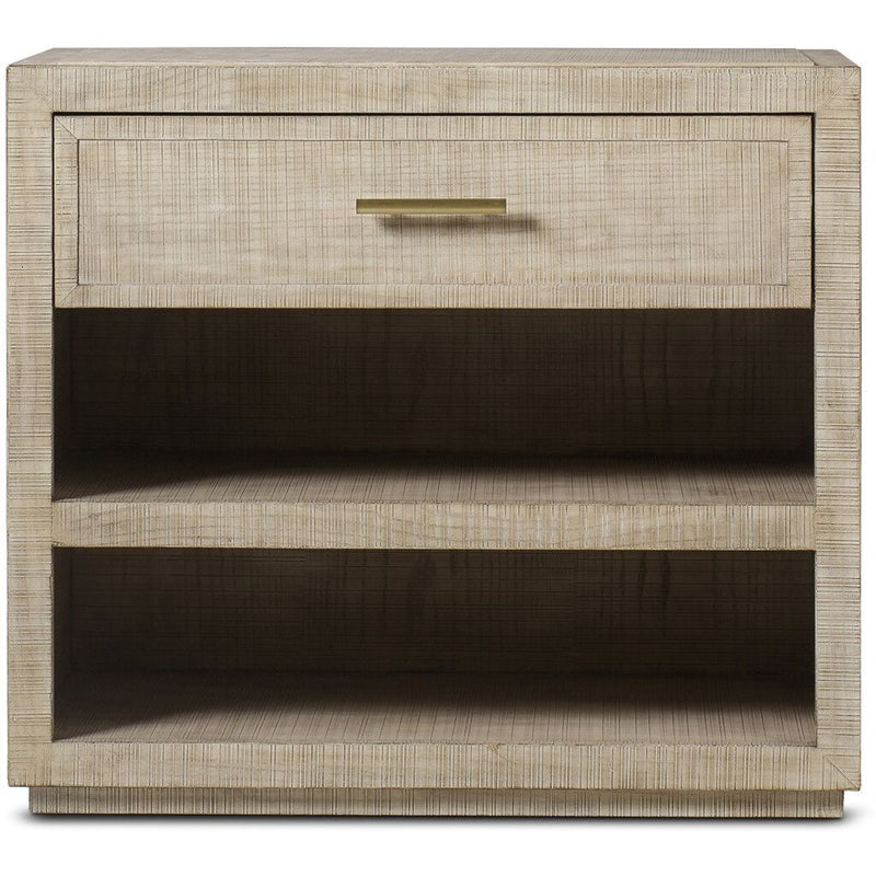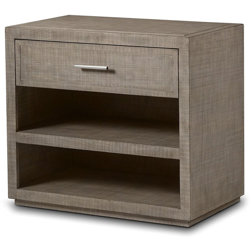 Create a light and breezy air of sophistication in your bedroom (and clutter free) with this beautiful one drawer nightstand. Where elegant parson forms, fine lines and textured parchment finishes give way to retreat living.