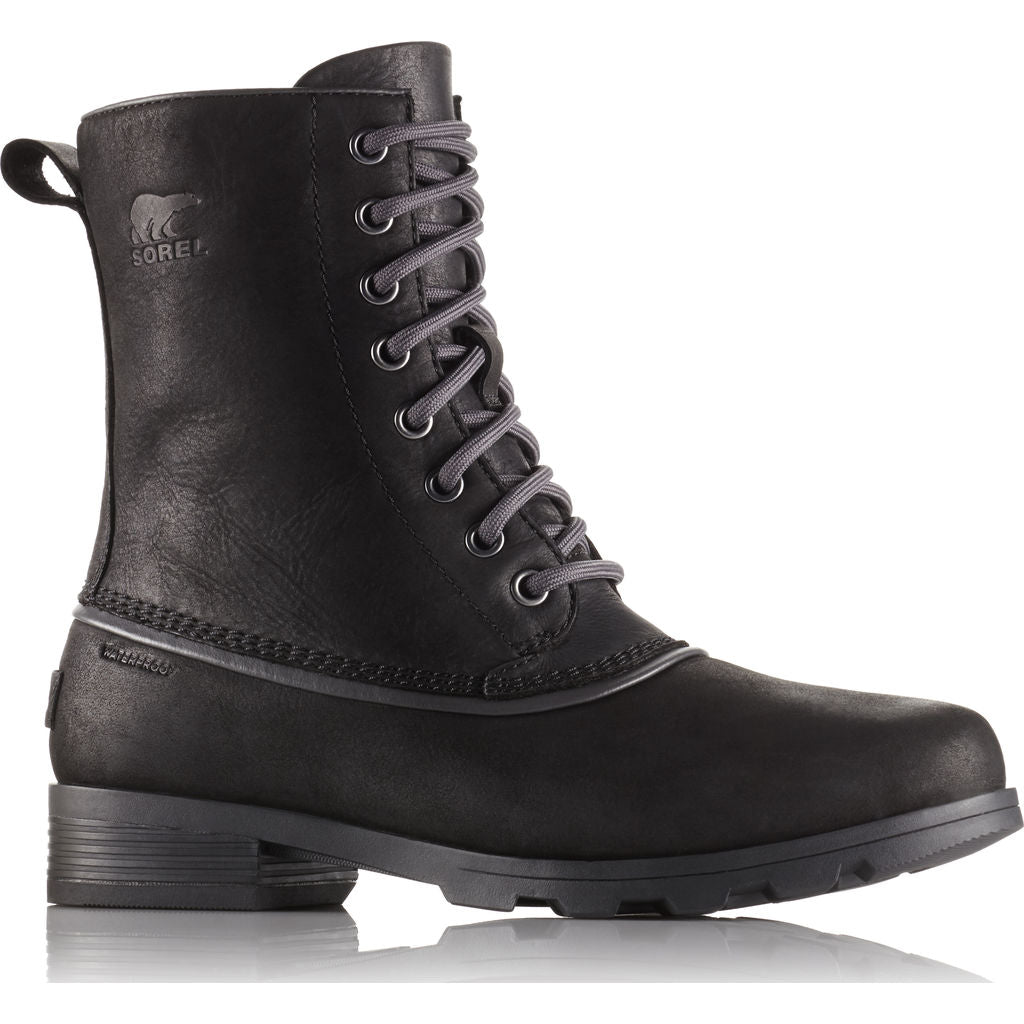 Looking for a great pair of stylish rain boots? The Sorel Women's Emelie 1964 Boot is crafted out of a waterproof full-grain leather with a seam-sealed waterproof construction. These black boots are functional and timeless, the perfect rain boots to wear all day. A sleek design for women on the go- run errands or go on an adventure in your favorite city and keep your feet dry in heavy rain.