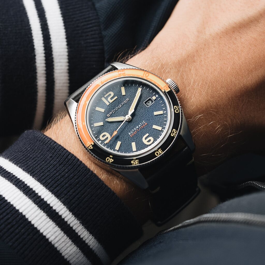 Spinnaker Fleuss Japan Automatic 3 Hands Watch | Sunset Orange / Stainless Steel / Blue / Black
