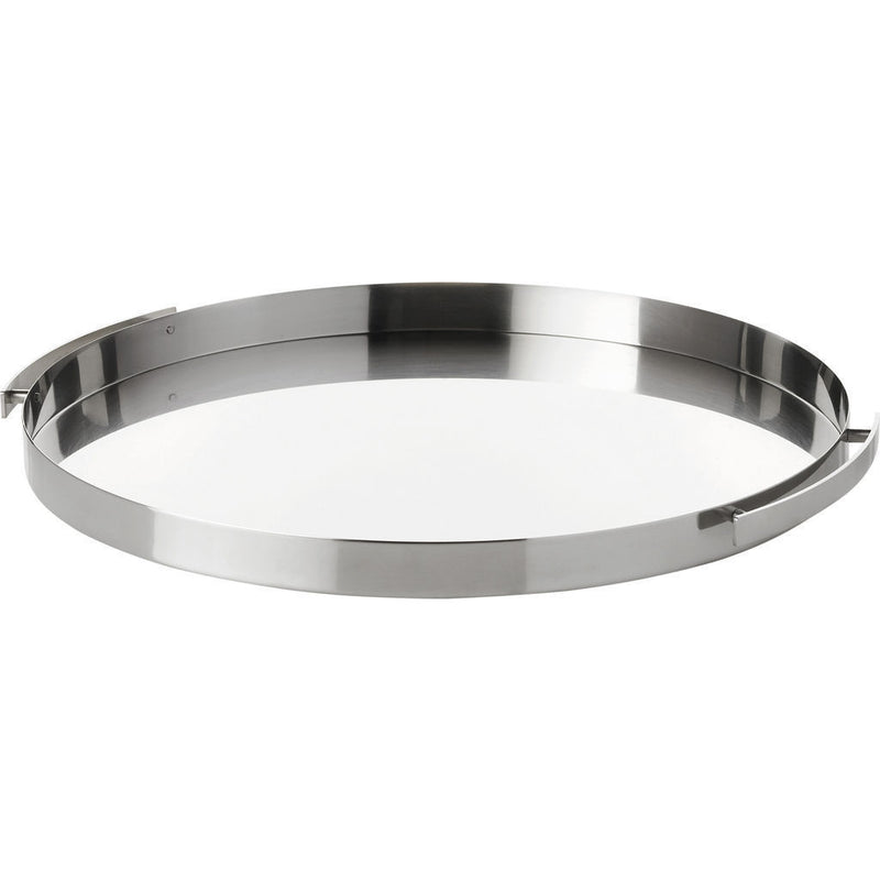 Designed to help you serve and entertain guests in style; Arne Jacobsen's Serving Tray boasts a striking aesthetic and generous dimensions. Crafted from sleek stainless steel and complete with a soft satin finish, this tray is the perfect resting place for and AJ Tea Pot.