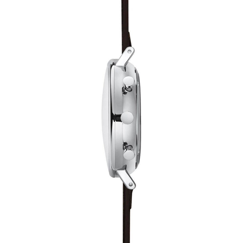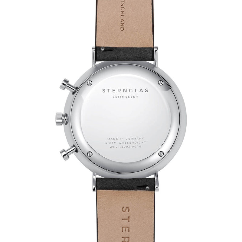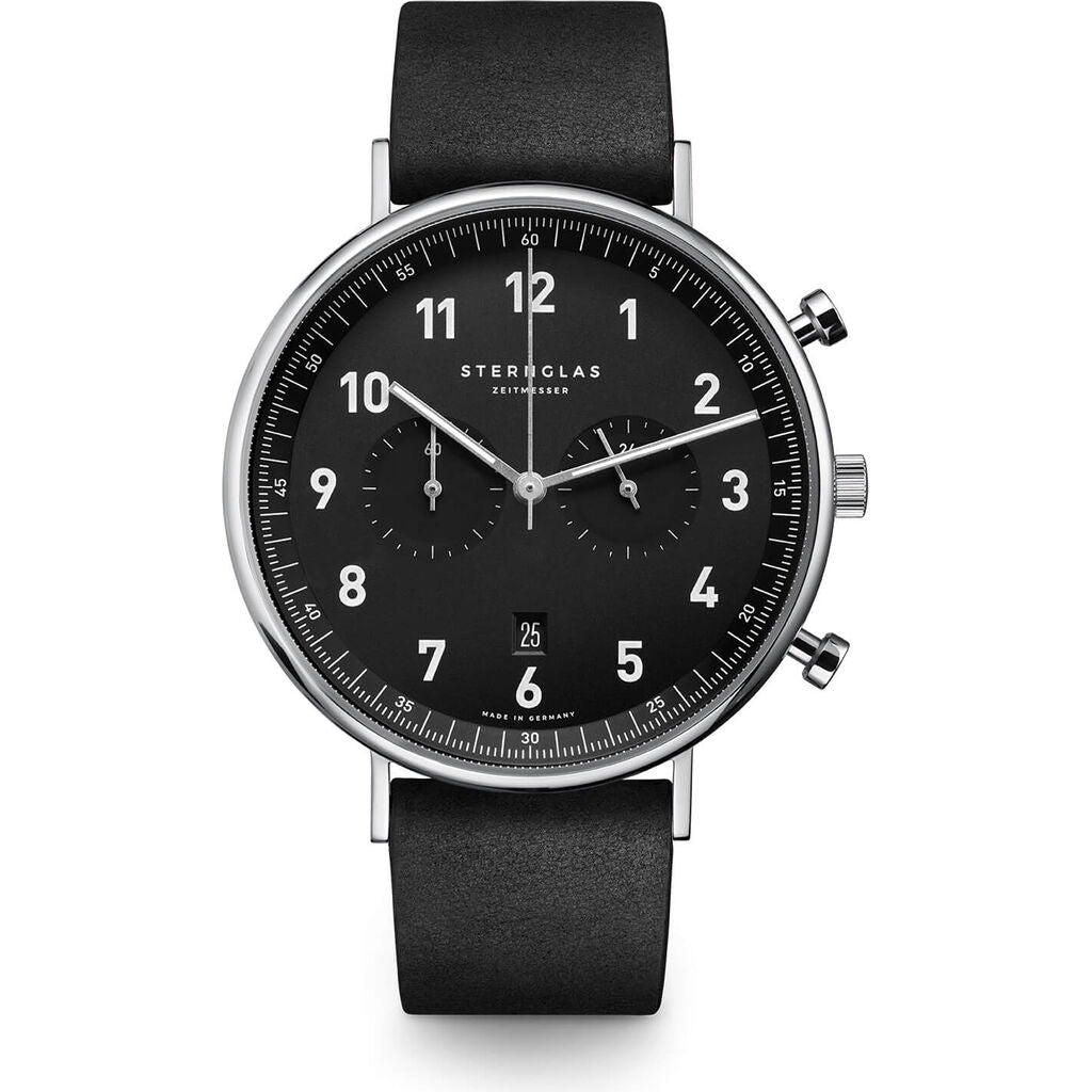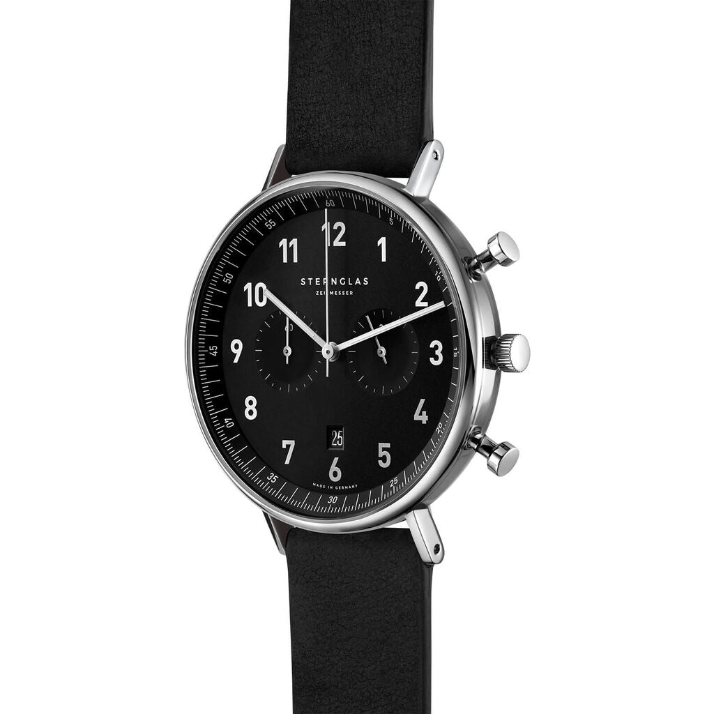 Innovative in design, but still true to our DNA. Functional, aesthetic, and robust as well as high quality - without showing off. Large indexes ensure optimum readability. The outer bezel is reminiscent of outdoor measuring instruments. The double-domed sapphire crystal provides optimal scratch resistance, a clear view, and a sophisticated look. The chronograph-typical totalizers have been deliberately designed in a striking way. By pressing the pusher to trigger the stop function, seconds and minutes can be measured, while the chronograph second hand on the main dial measures the seconds during the stopping process.