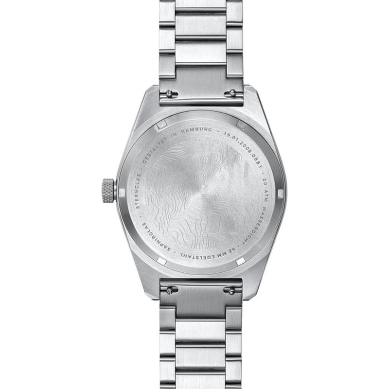 Inspired by classic diving watches, it is designed for everyday use as well as for the next adventure. Of course, we only use stainless steel so that the watch is not affected by water corrosion. To achieve a particularly high water resistance, the case back and the crown are screwed down.