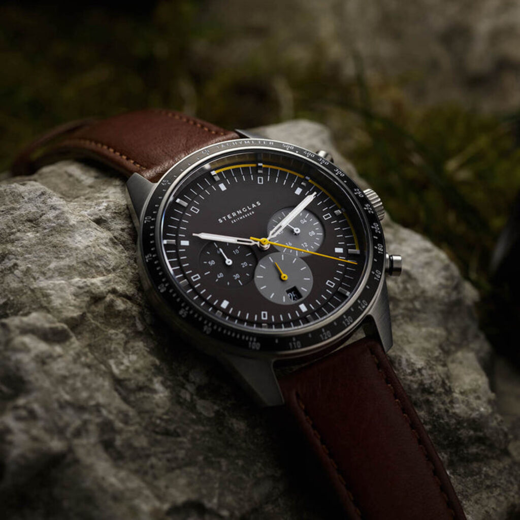 The distinctive look of the Tachymeter is inspired by the world-famous Swiss Furkapass. The brushed 316 stainless steel case and matte anthracite dial are reminiscent of the region's steep rock faces. Located at an altitude of 2,429 meters, this road pass in the Swiss Alps is considered extremely difficult to navigate and demands everything from even experienced drivers. Does a glance at the masculine timepiece on your wrist give you the confidence you need