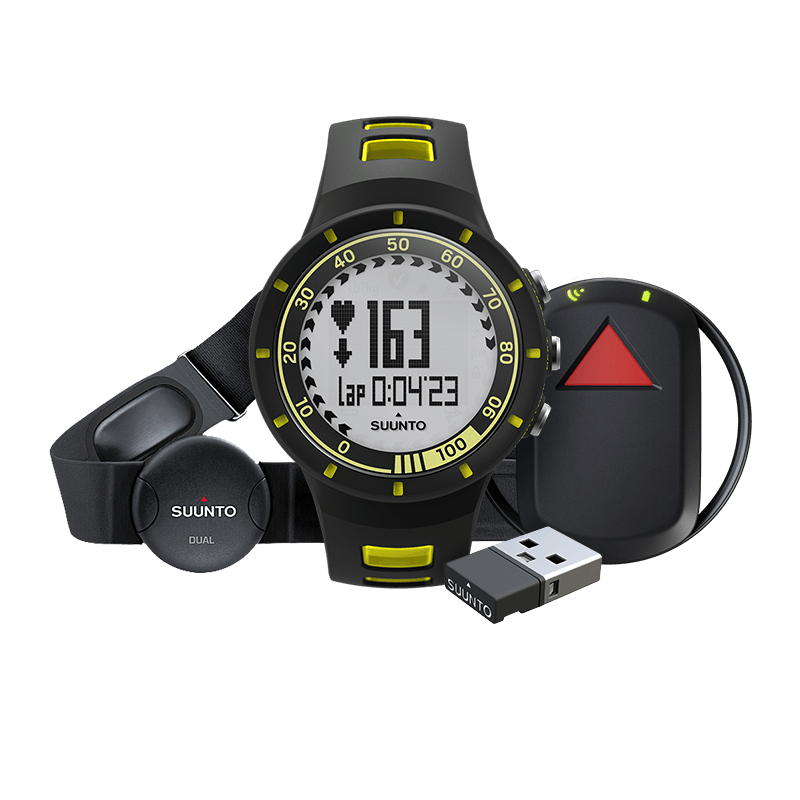 - In The Box: Suunto Quest Black, Suunto Movestick Mini, Suunto Dual Comfort Belt, Suunto GPS Track POD with USB cable, Armband, and Quick Guide